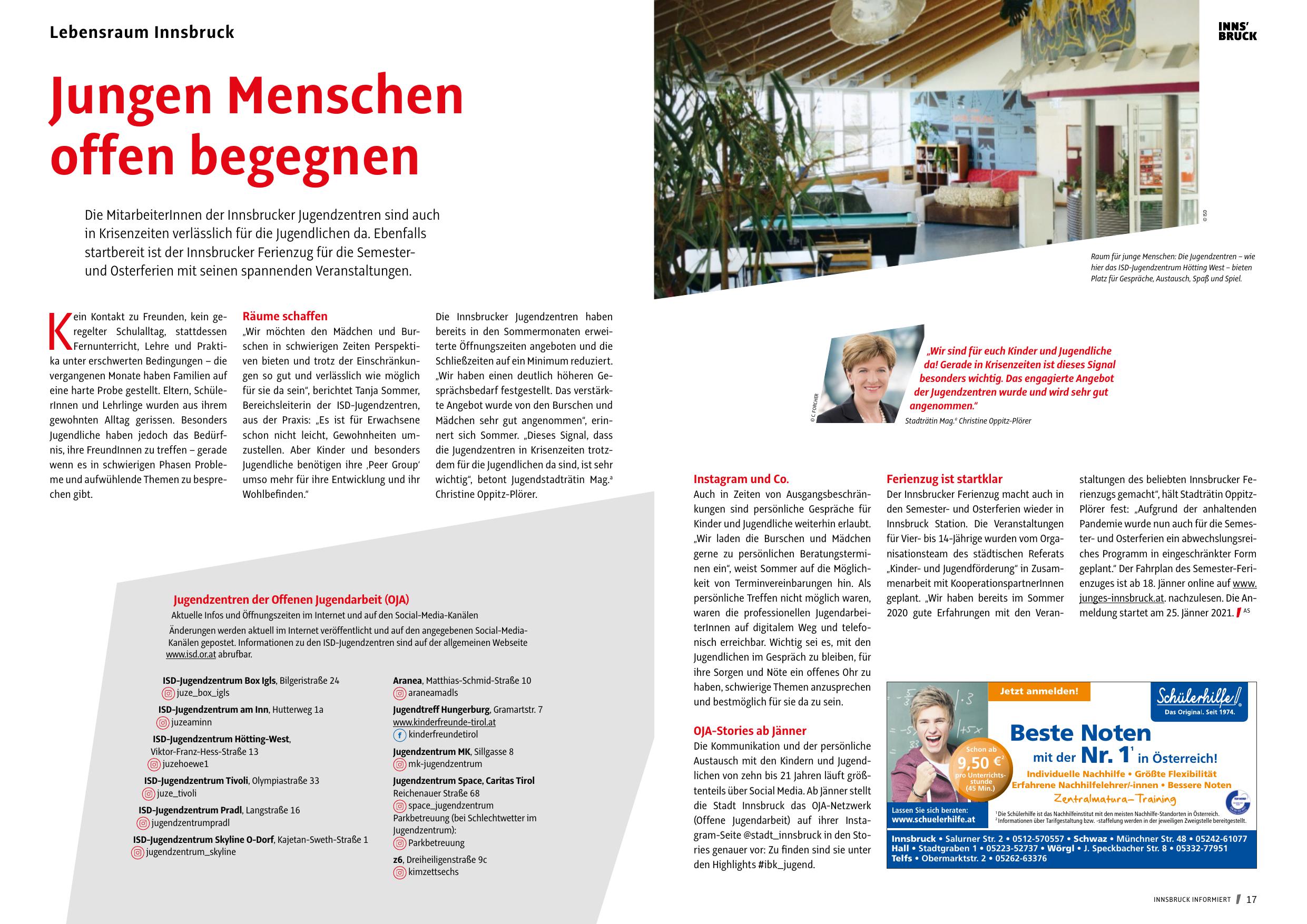 junges-innsbruck.at. nachzulesen. Die Anmeldung startet am 25. Jänner 2021. AS