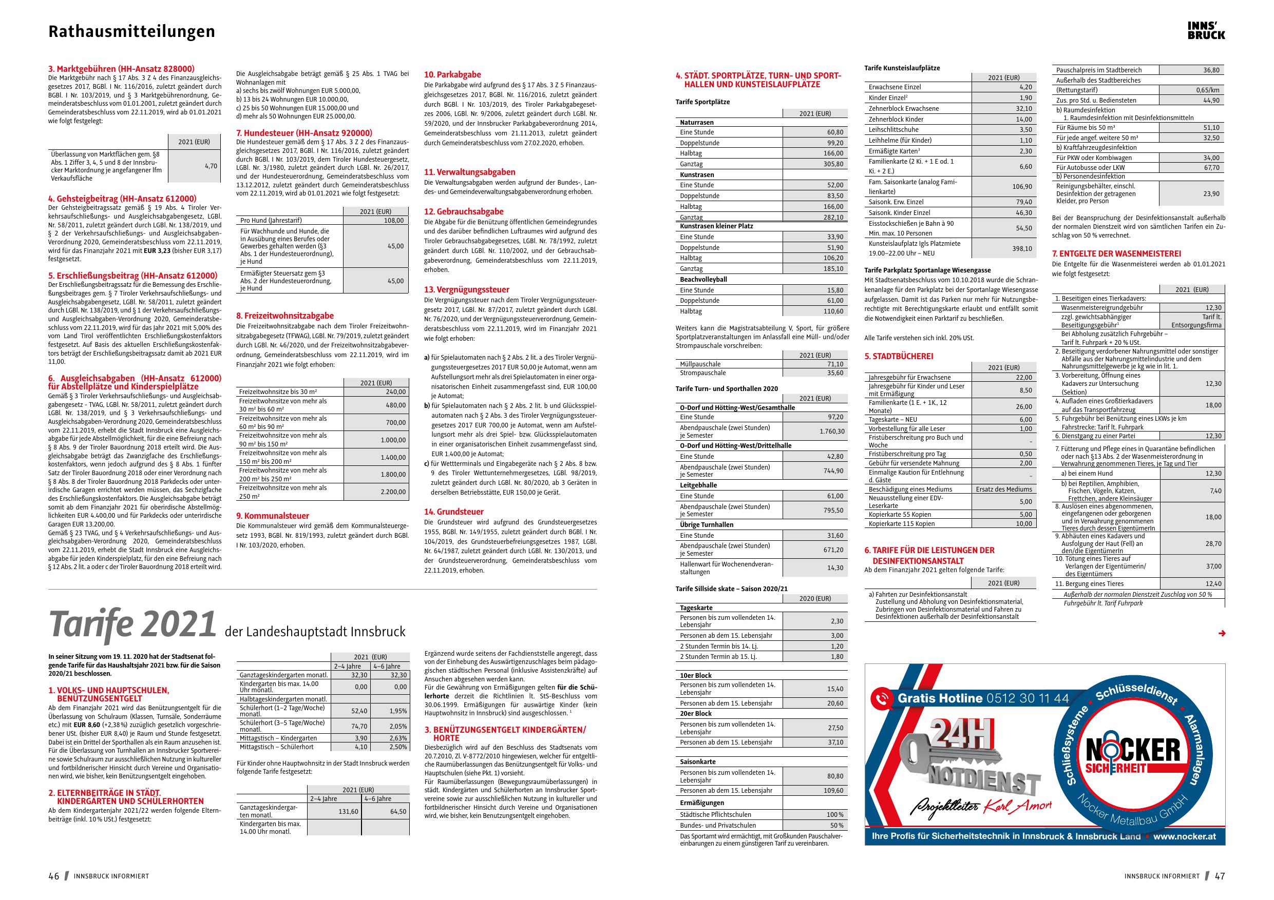 59/2020, und der Innsbrucker Parkabgabeverordnung 2014,