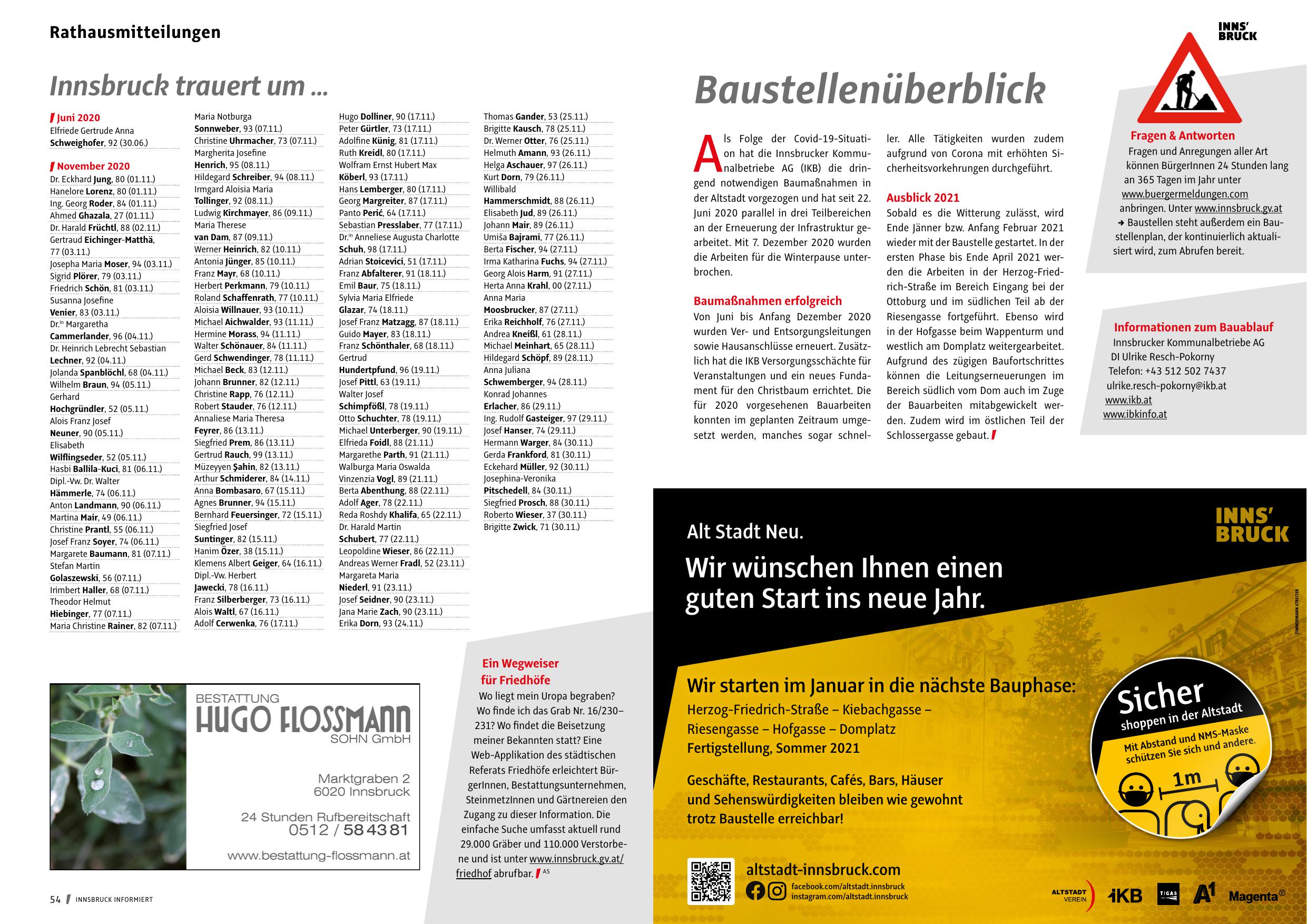 ls Folge der Covid-19-Situation hat die Innsbrucker Kommunalbetriebe AG (IKB) die dringend notwendigen Baumaßnahmen in
