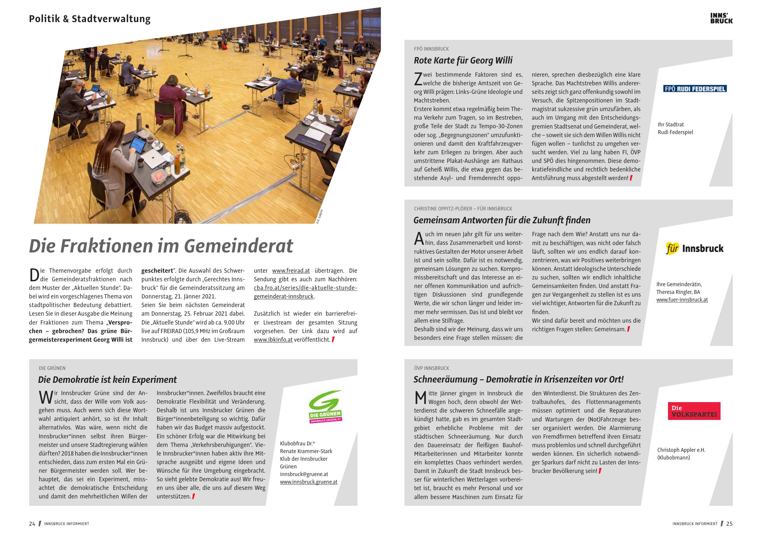 ir Innsbrucker Grüne sind der Ansicht, dass der Wille vom Volk ausgehen muss. Auch wenn sich diese Wortwahl antiquiert anhört, so ist ihr Inhalt