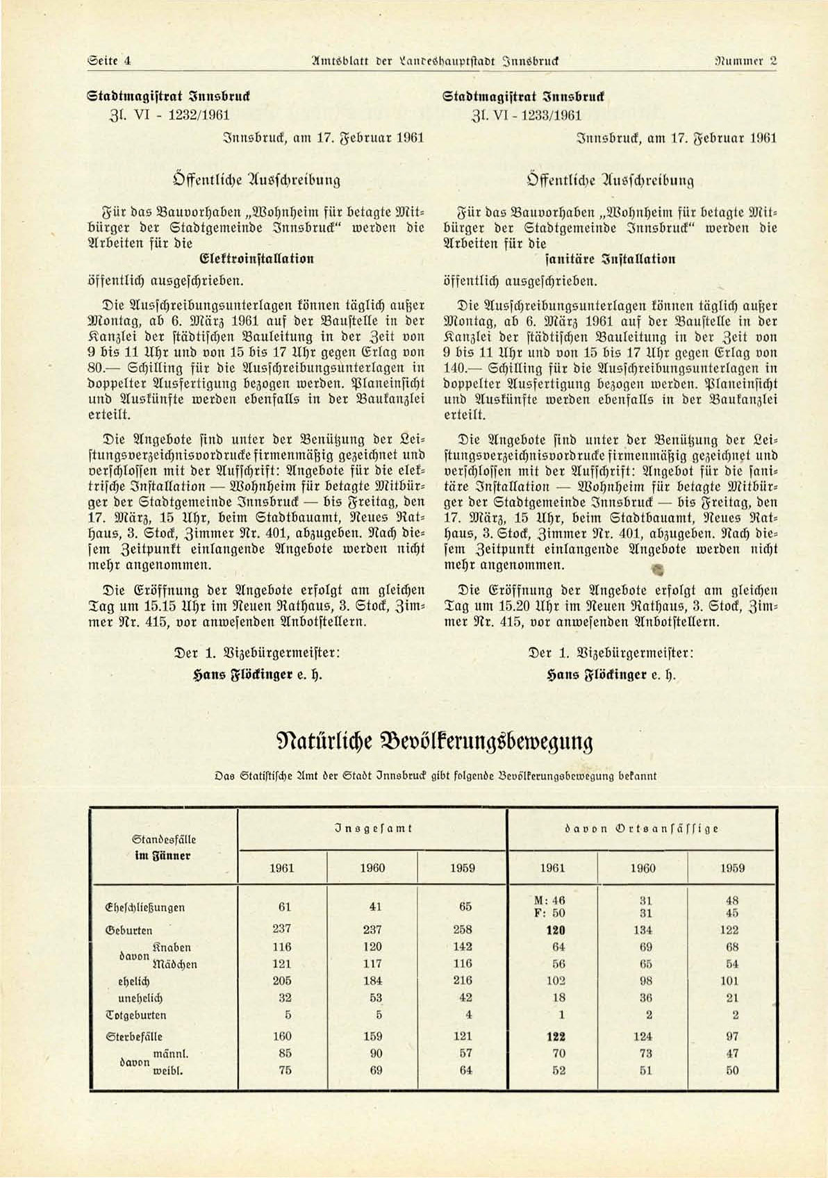 Oas Statistische Amt der Stadt Innsbruck gibt folgende Zevölkerungobewegung bekannt