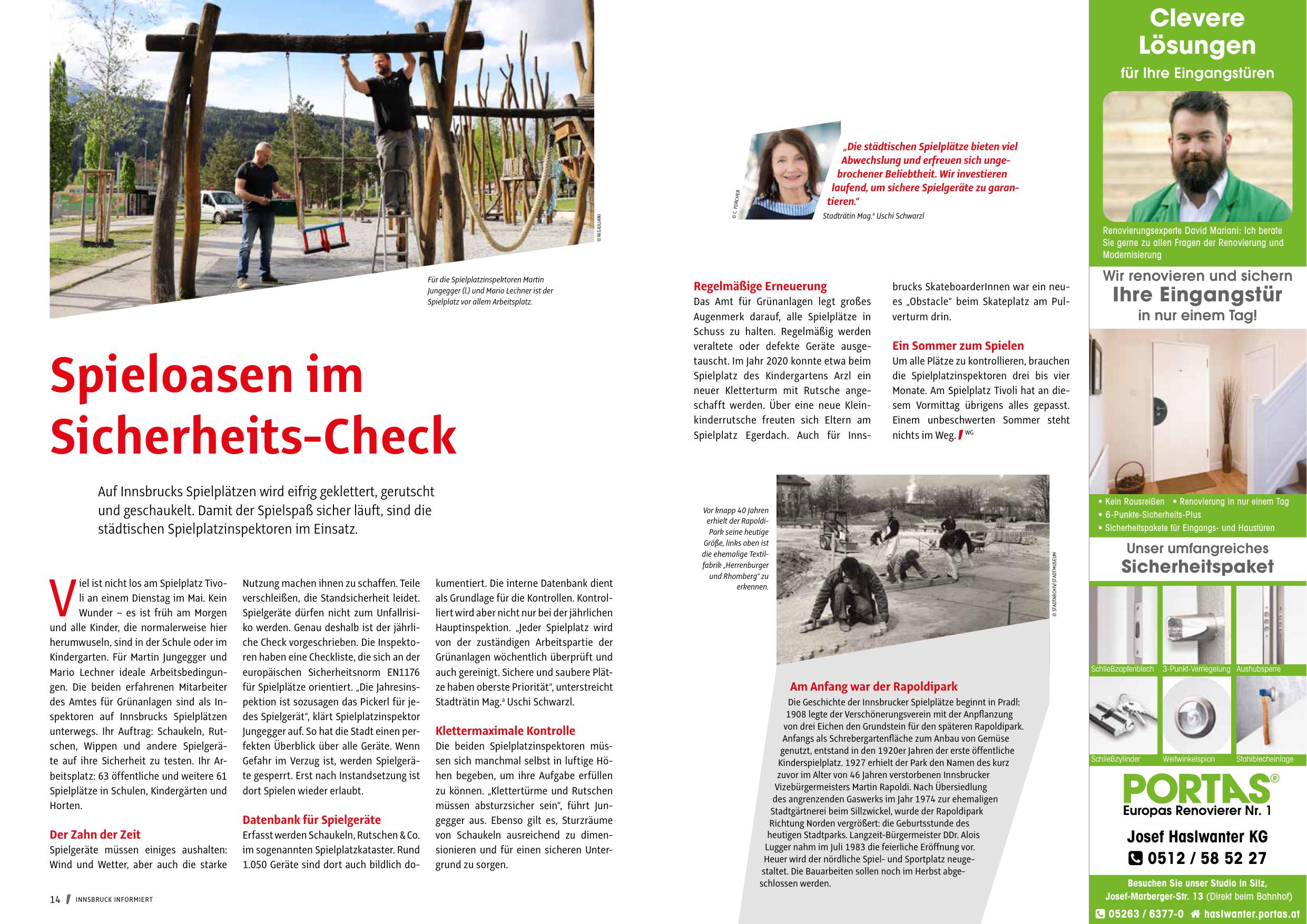 des Amtes für Grünanlagen sind als Inspektoren auf Innsbrucks Spielplätzen