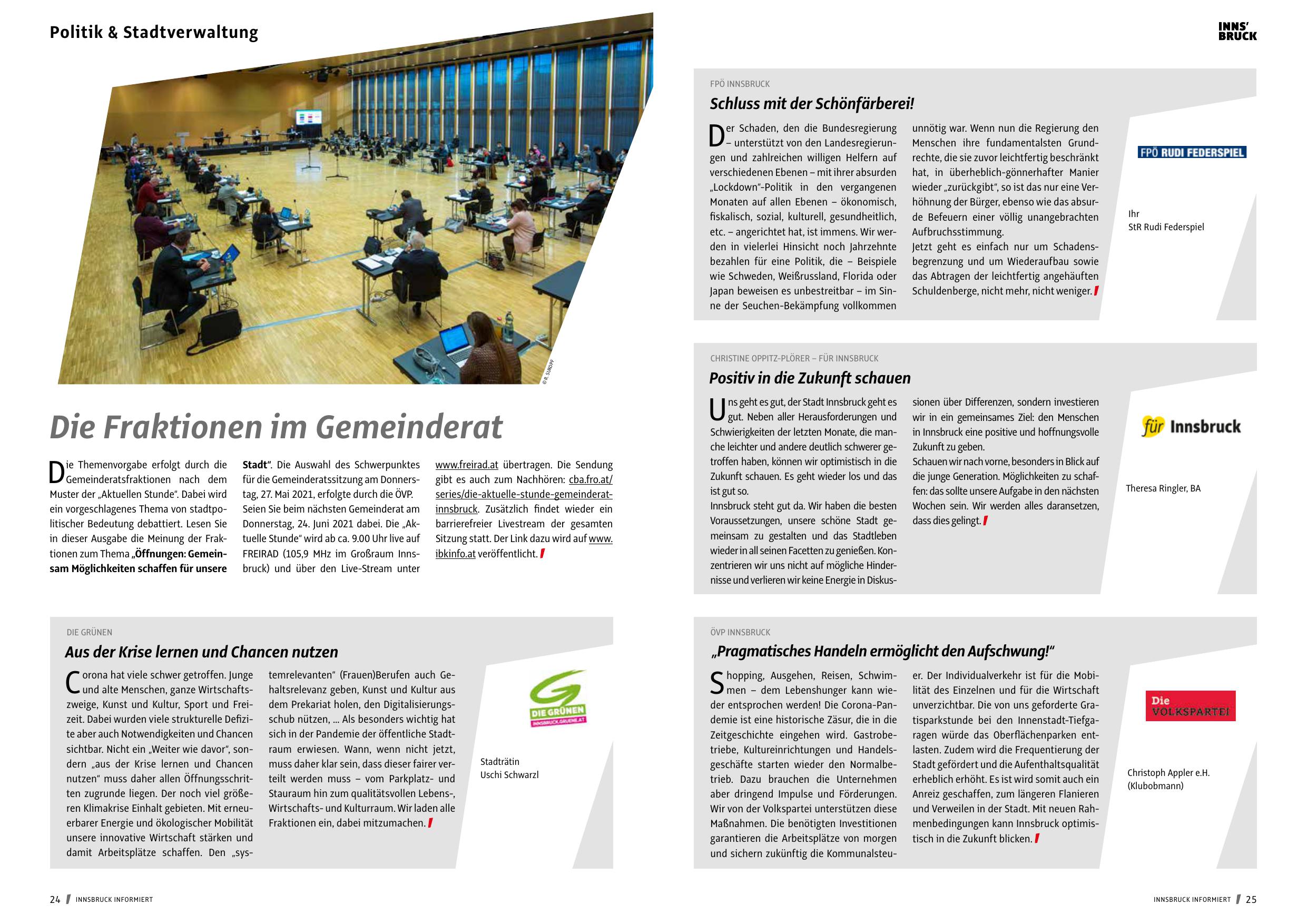 in dieser Ausgabe die Meinung der Fraktionen zum Thema „Öffnungen: Gemeinsam Möglichkeiten schaffen für unsere