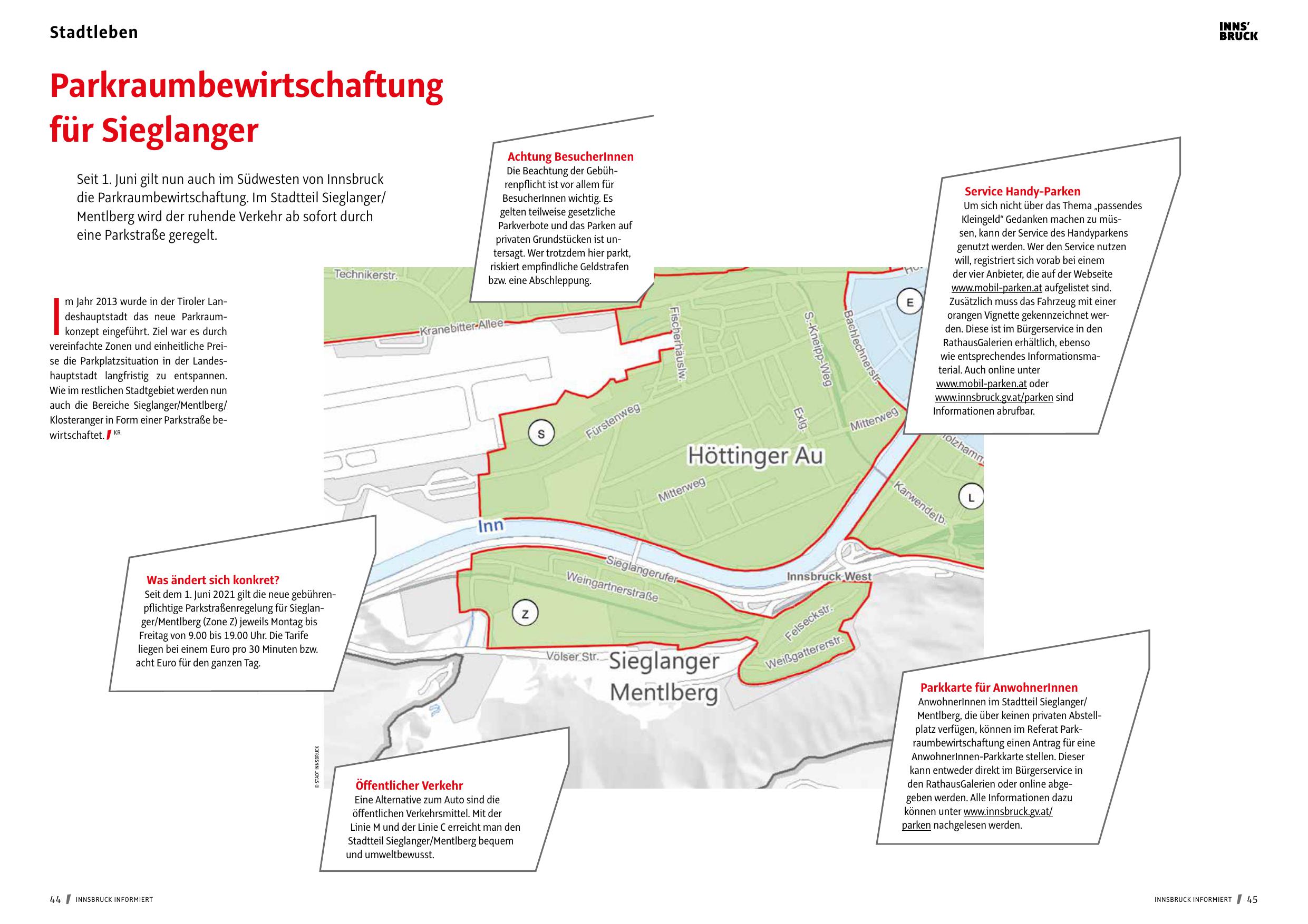 Seit dem 1. Juni 2021 gilt die neue gebührenpflichtige Parkstraßenregelung für Sieglanger/Mentlberg (Zone Z) jeweils Montag bis