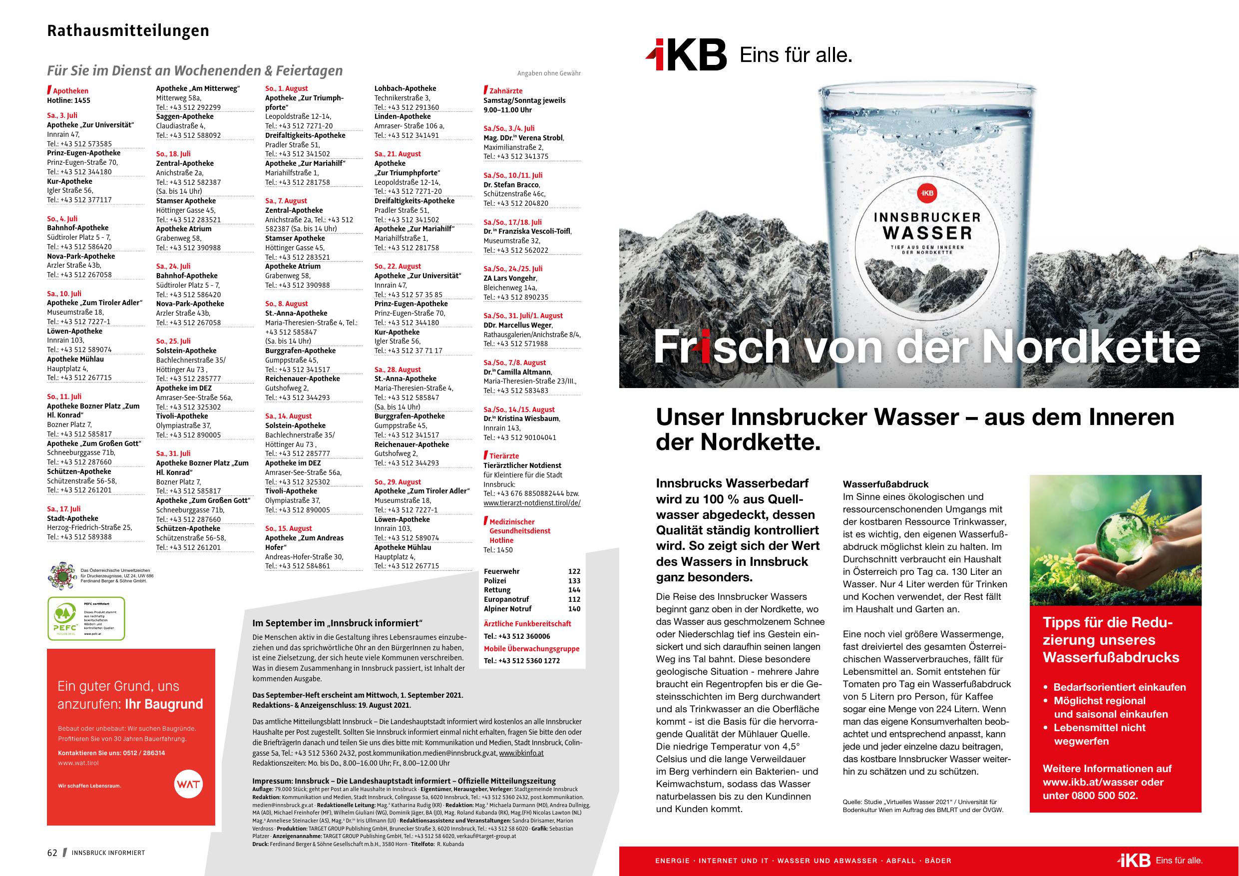 Impressum: Innsbruck – Die Landeshauptstadt informiert – Offizielle Mitteilungszeitung