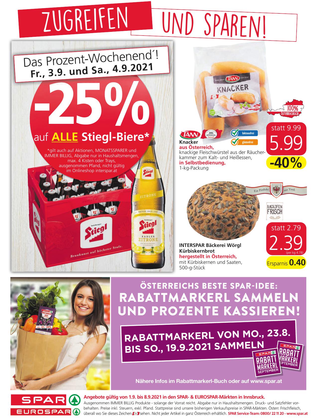 Angebote gültig von 1.9. bis 8.9.2021 in den SPAR- & EUROSPAR-Märkten in Innsbruck.