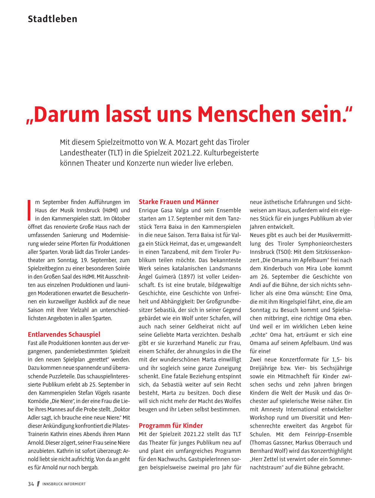 Mit diesem Spielzeitmotto von W. A. Mozart geht das Tiroler