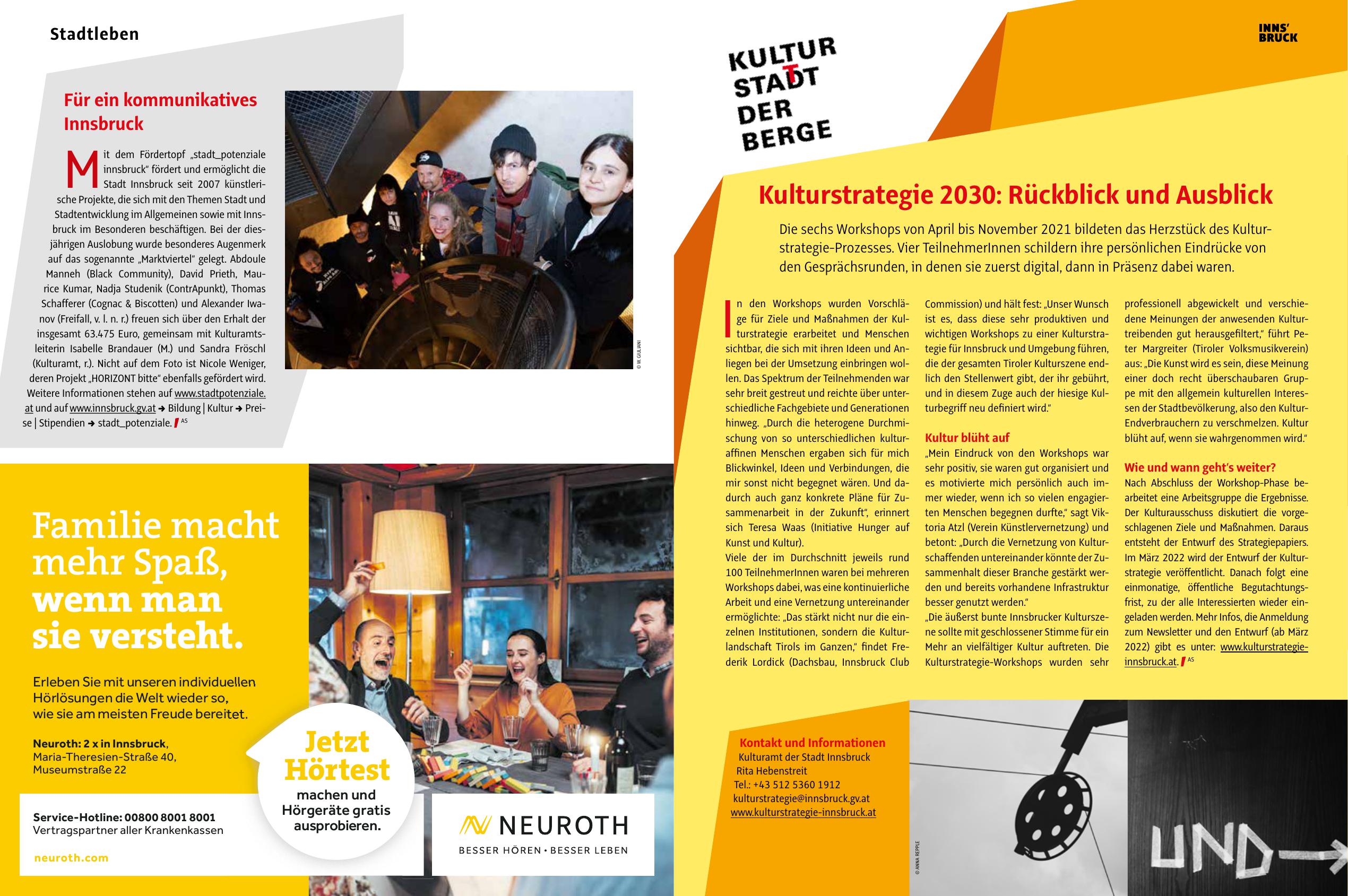 wichtigen Workshops zu einer Kulturstrategie für Innsbruck und Umgebung führen,