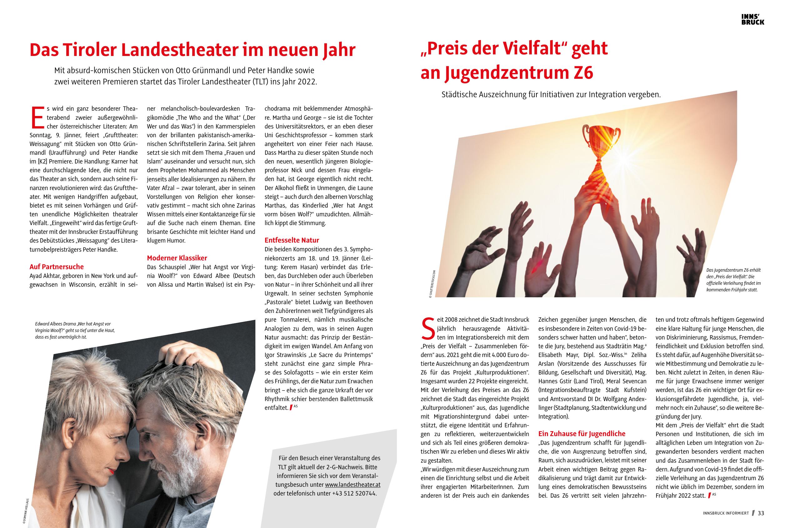 zwei weiteren Premieren startet das Tiroler Landestheater (TLT) ins Jahr 2022.