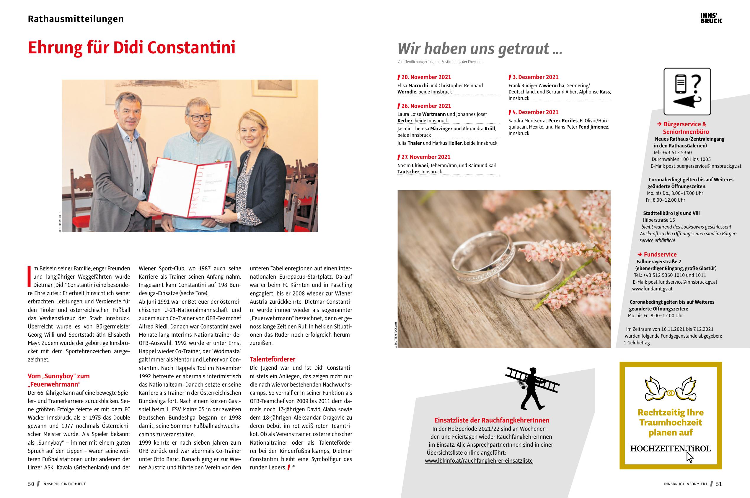 Dietmar „Didi“ Constantini eine besondere Ehre zuteil: Er erhielt hinsichtlich seiner