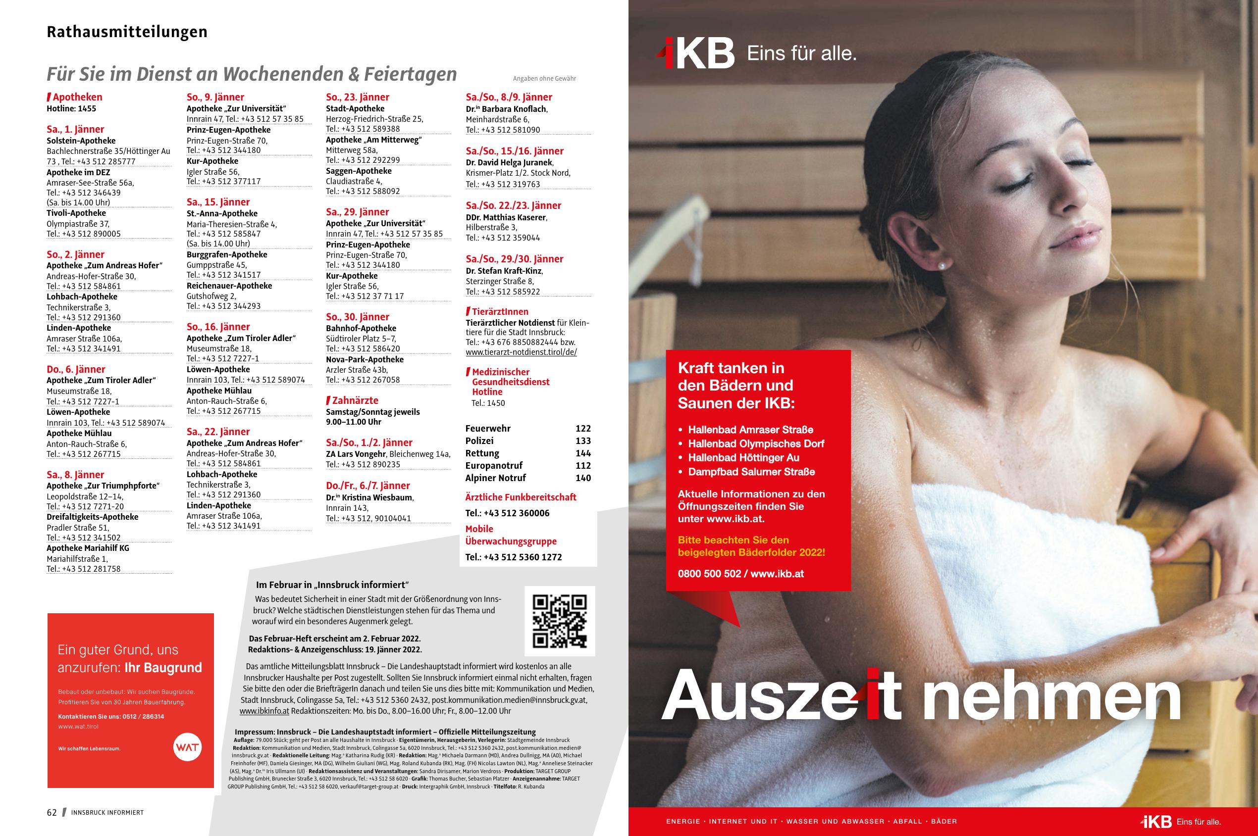 www.ibkinfo.at Redaktionszeiten: Mo. bis Do., 8.00–16.00 Uhr; Fr., 8.00–12.00 Uhr