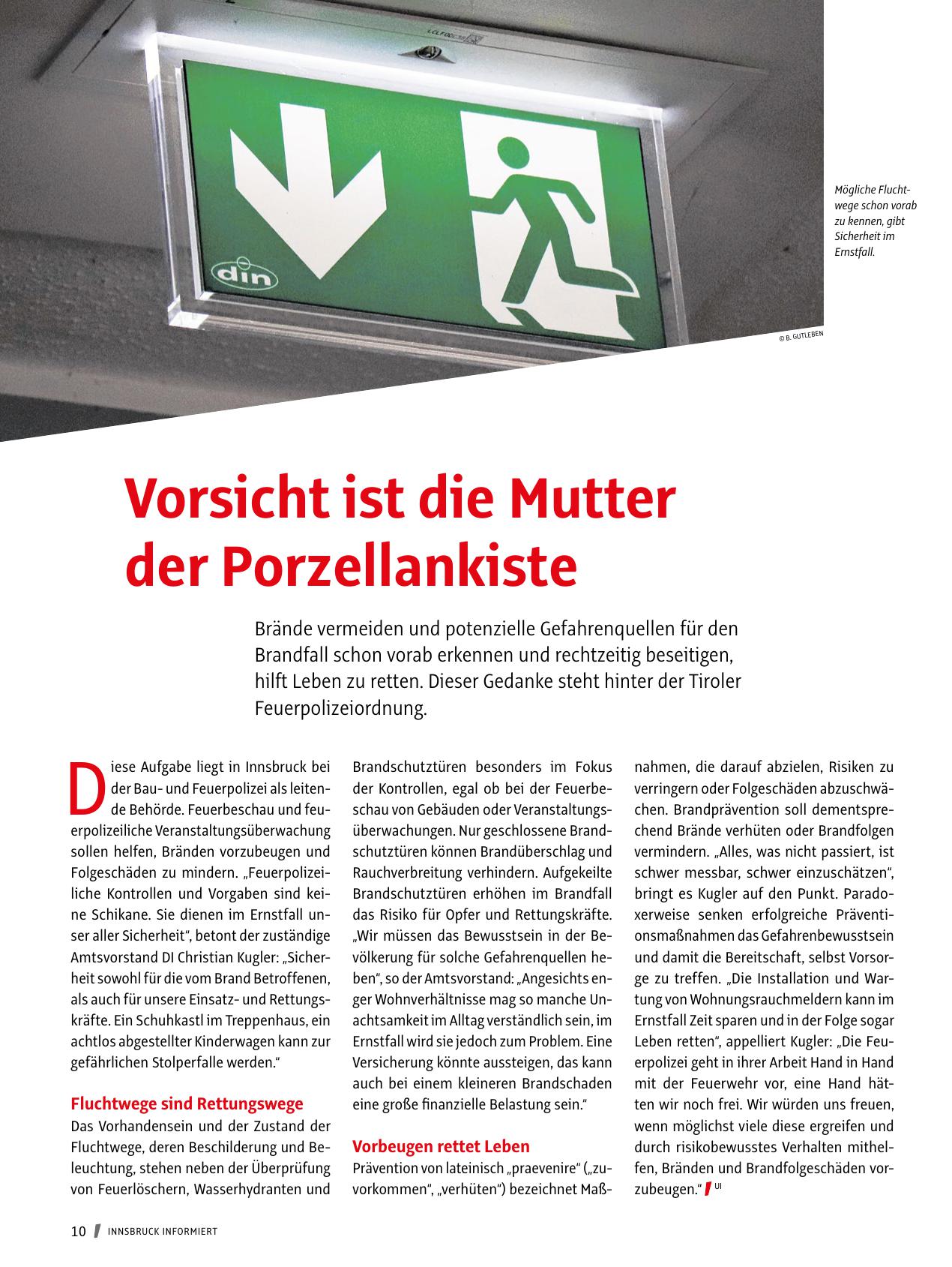 der Kontrollen, egal ob bei der Feuerbeschau von Gebäuden oder Veranstaltungsüberwachungen. Nur geschlossene Brandschutztüren können Brandüberschlag und