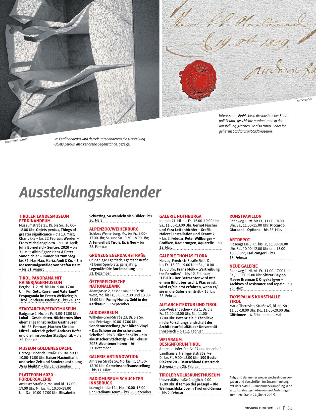 Bergisel 1-2, Mi. bis Mo., 9.00-17.00