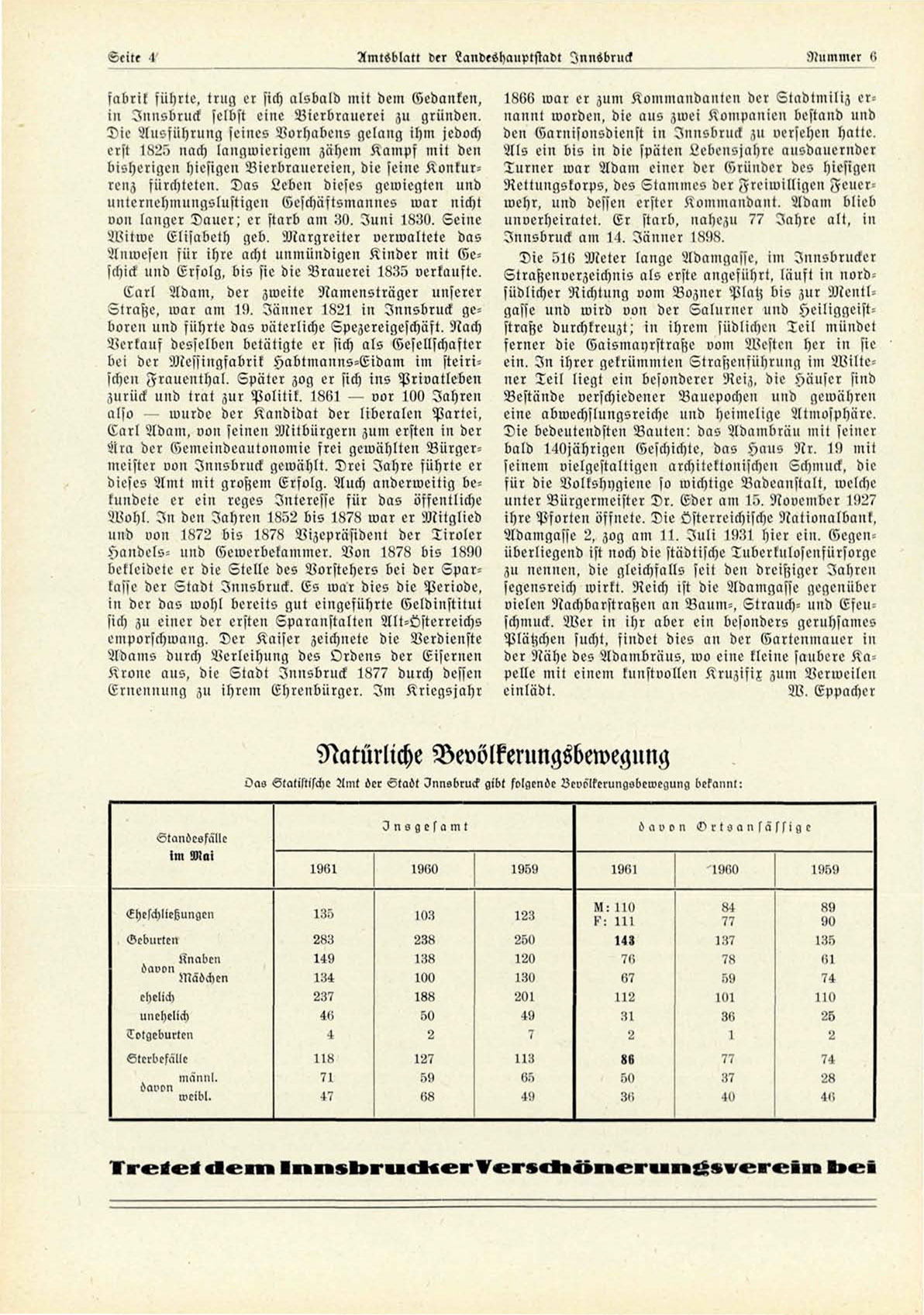 bekleidete er die Stelle des Vorstehers bei der Spartasse der Stadt Innsbruck. (5s war dies die Periode,