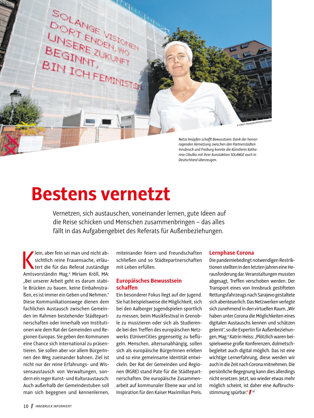 Innsbruck und Freiburg konnte die Künstlerin Katharina Cibulka mit ihrer Kunstaktion SOLANGE auch in