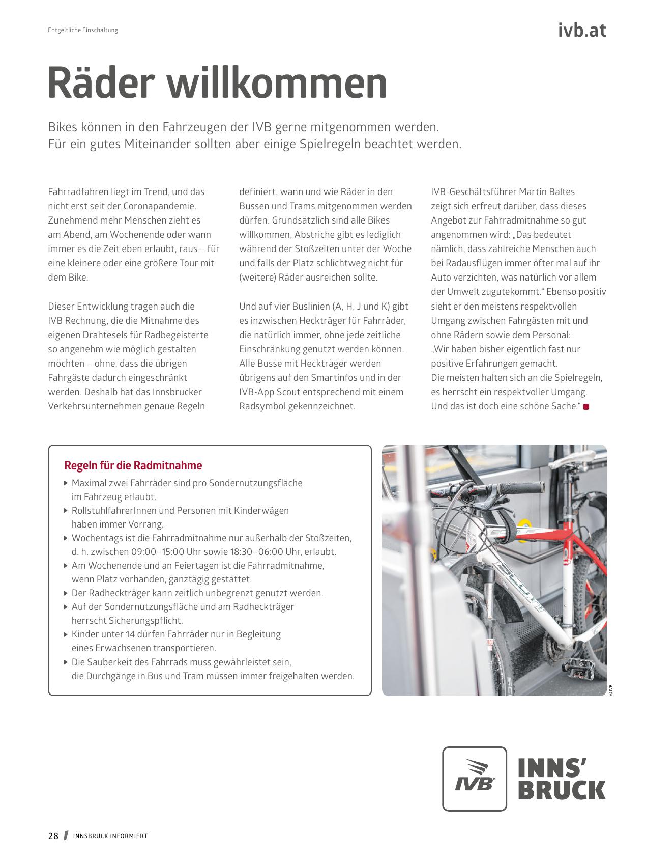 Bikes können in den Fahrzeugen der IVB gerne mitgenommen werden.