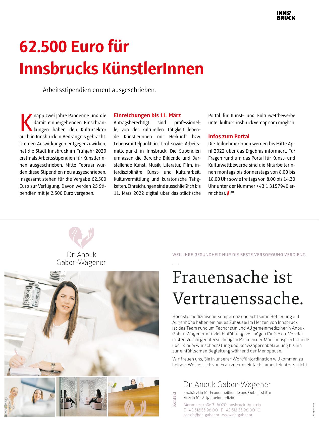 Lebensmittelpunkt in Tirol sowie Arbeitsmittelpunkt in Innsbruck. Die Stipendien