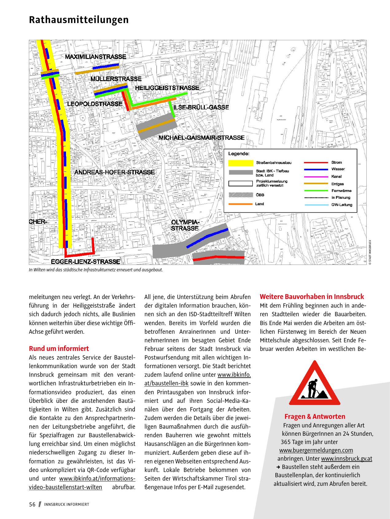 at/baustellen-ibk sowie in den kommenden Printausgaben von Innsbruck informiert und auf ihren Social-Media-Kanälen über den Fortgang der Arbeiten.
