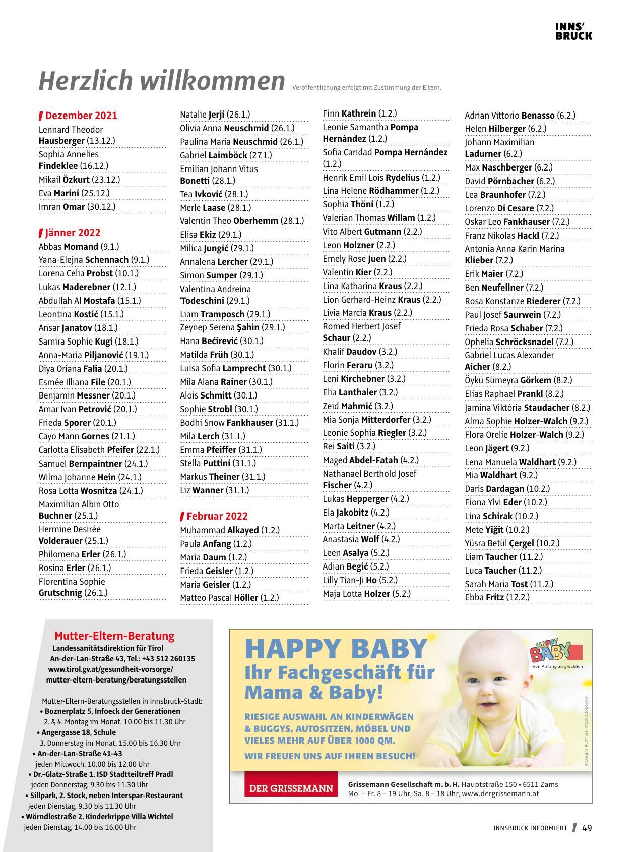 Mutter-Eltern-Beratungsstellen in Innsbruck-Stadt: