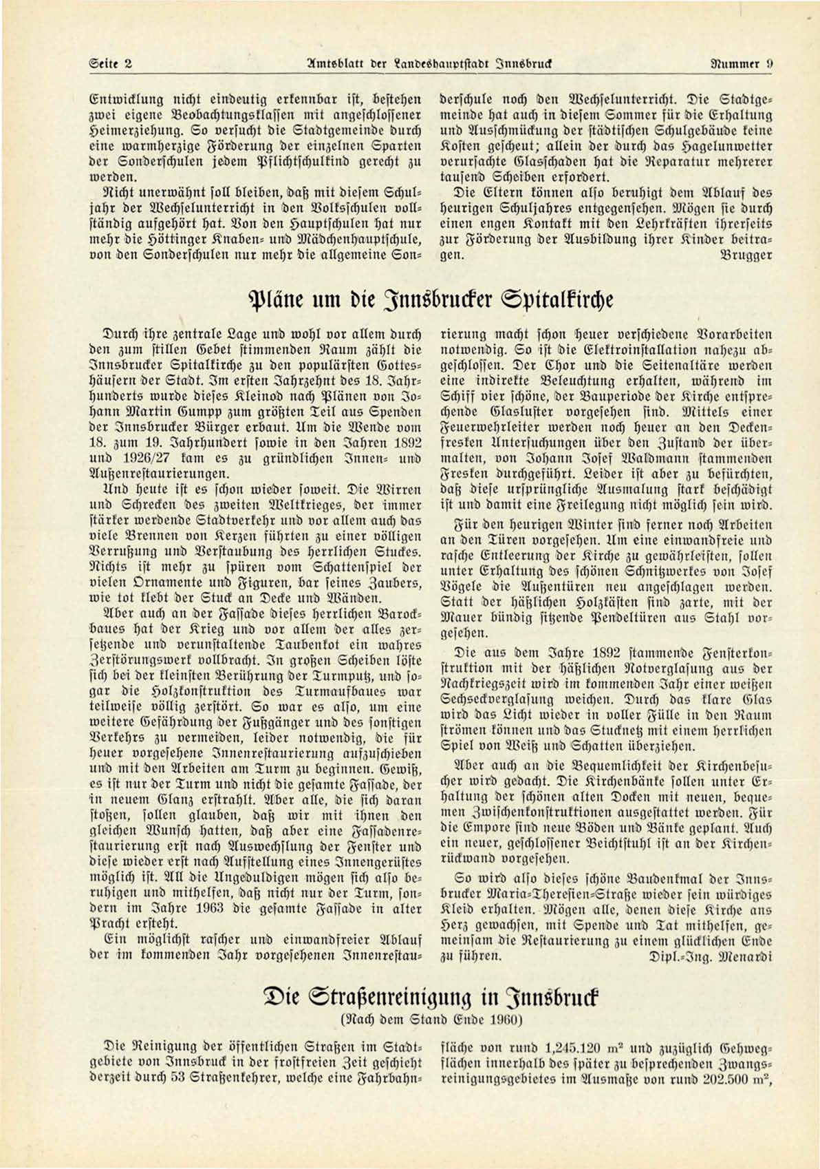 Die Reinigung der öffentlichen Straßen im Stadtgebiete von Innsbruck in der srostfreien Zeit geschieht