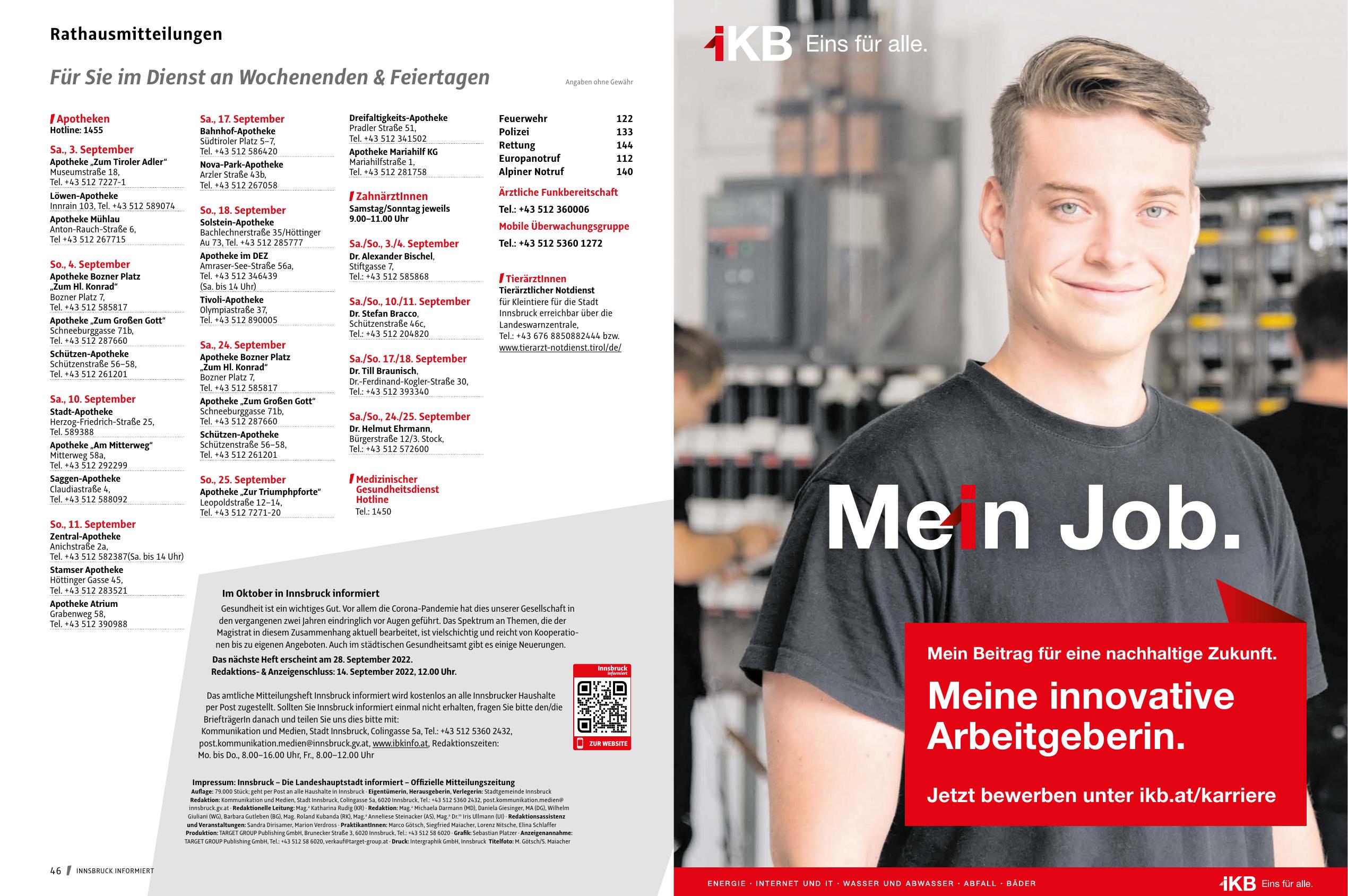 Impressum: Innsbruck – Die Landeshauptstadt informiert – Offizielle Mitteilungszeitung