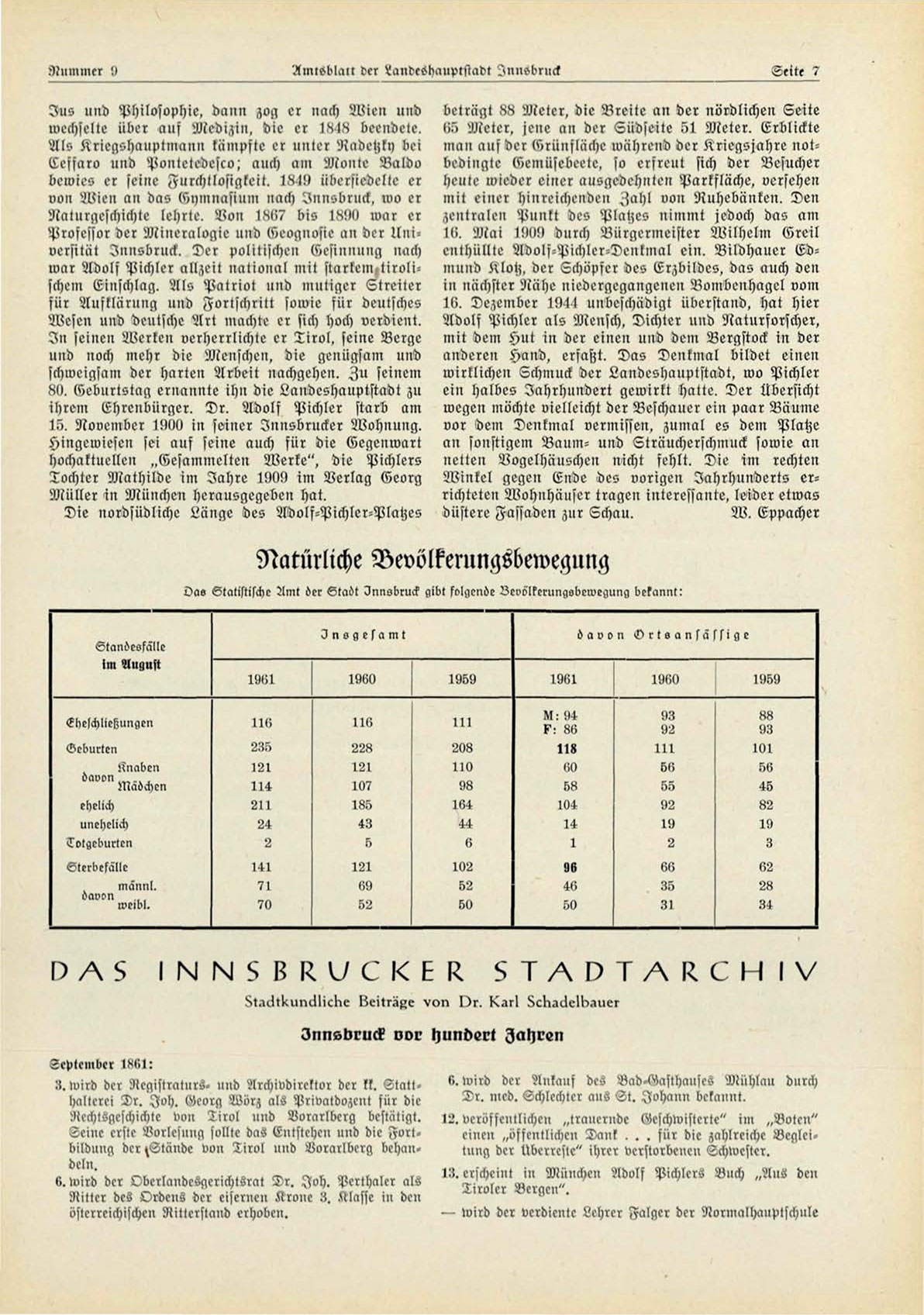 Oa« Statistische Amt der Staöt Innsbruck gibt folgende Bevölkerungsbewegung bekannt: