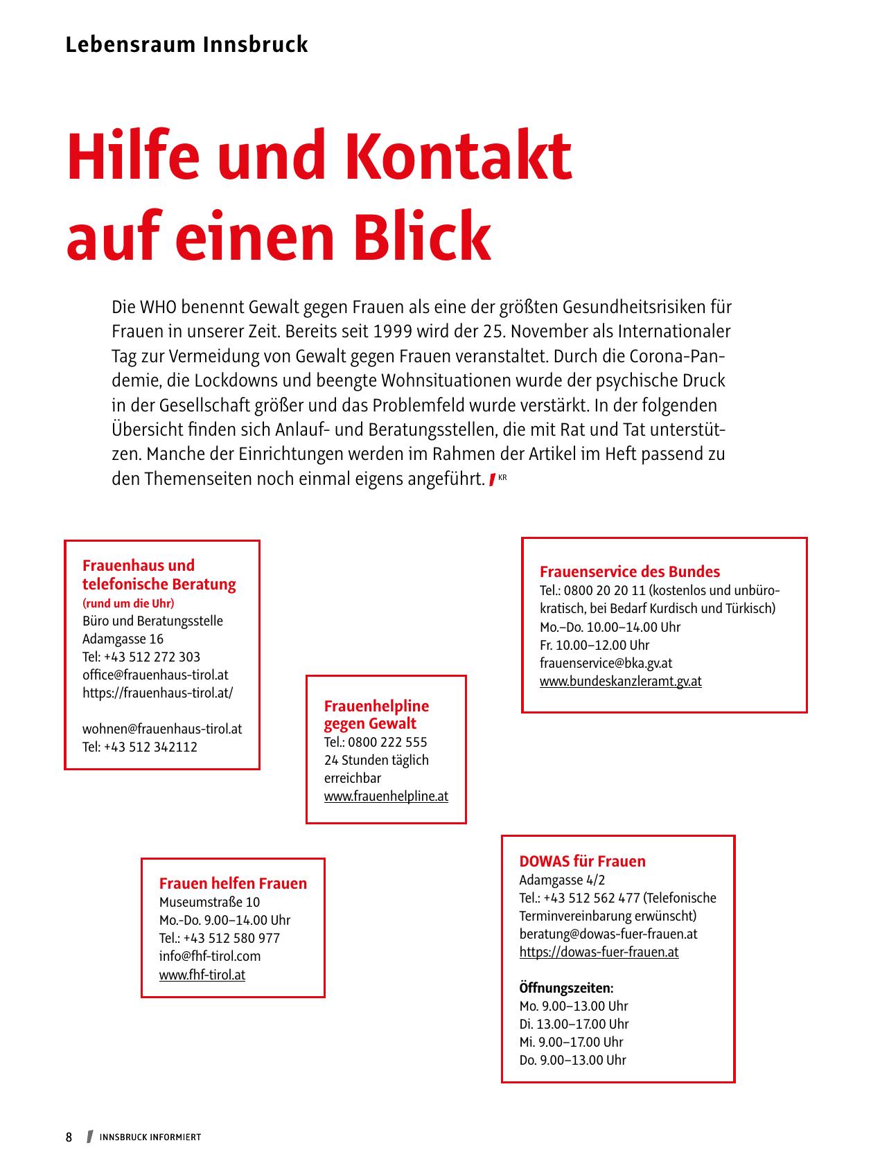 Übersicht finden sich Anlauf- und Beratungsstellen, die mit Rat und Tat unterstützen. Manche der Einrichtungen werden im Rahmen der Artikel im Heft passend zu