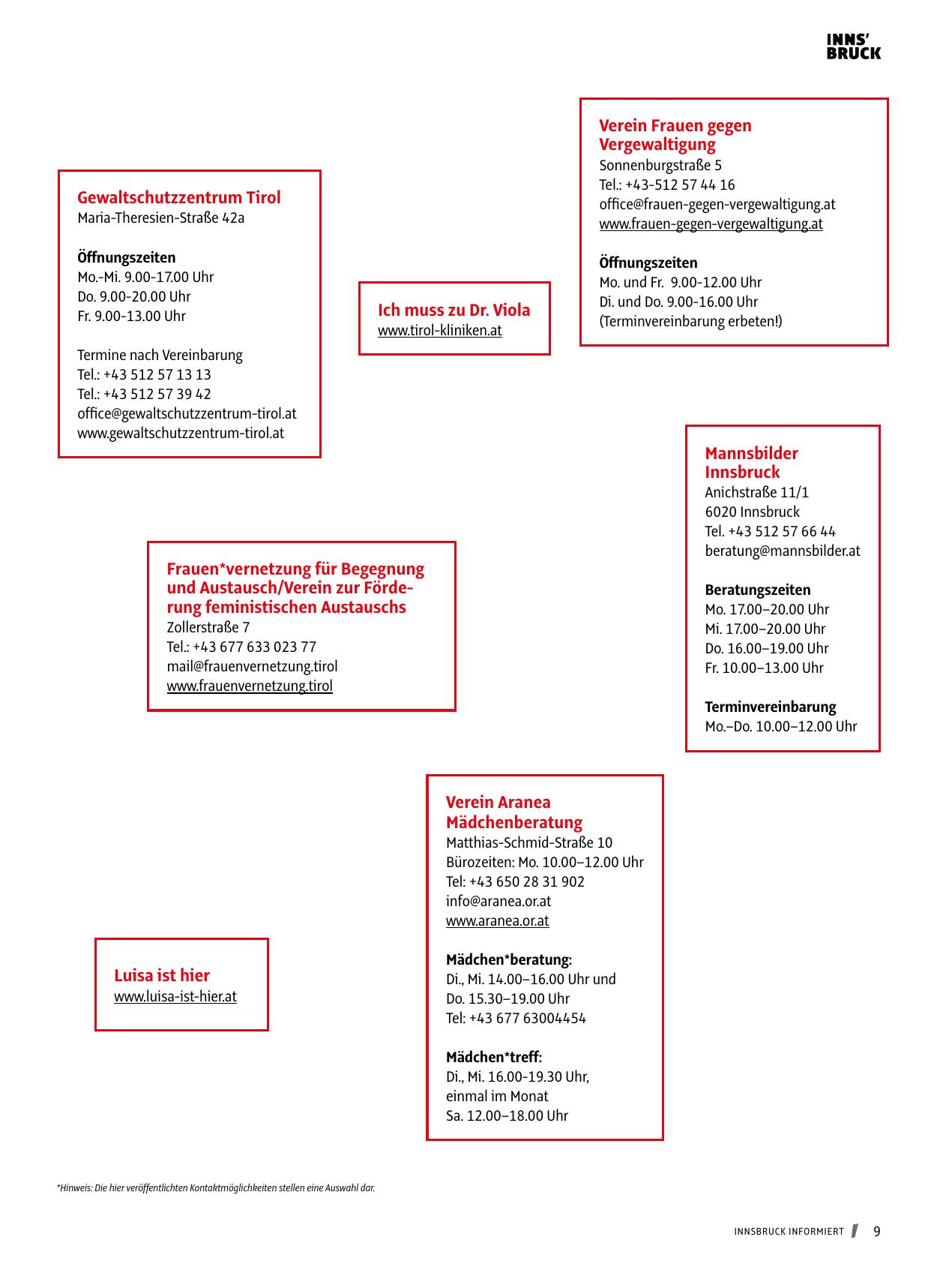 *Hinweis: Die hier veröffentlichten Kontaktmöglichkeiten stellen eine Auswahl dar.