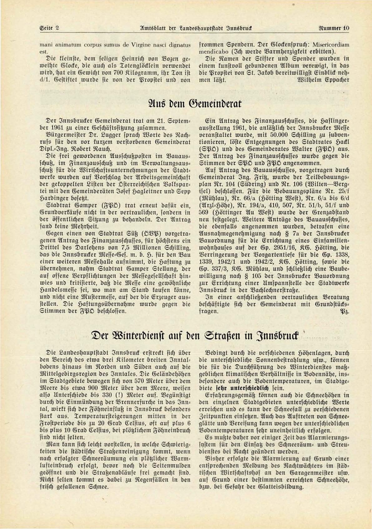 Der Innsbrucker Gemeinderat trat am 21. September 1W1 zu einer Geschäftssitzung zusammen.