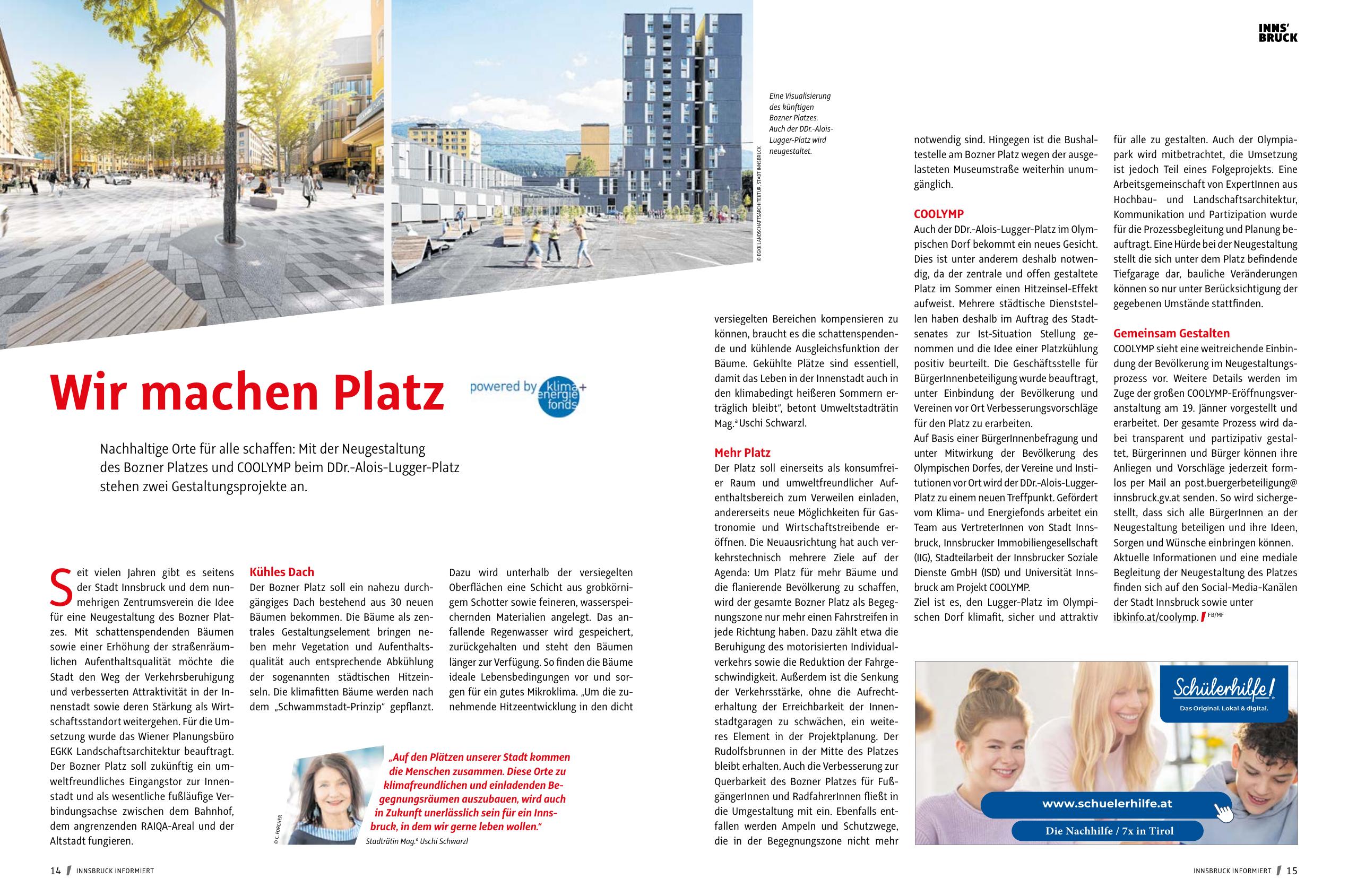 des Bozner Platzes und COOLYMP beim DDr.-Alois-Lugger-Platz
