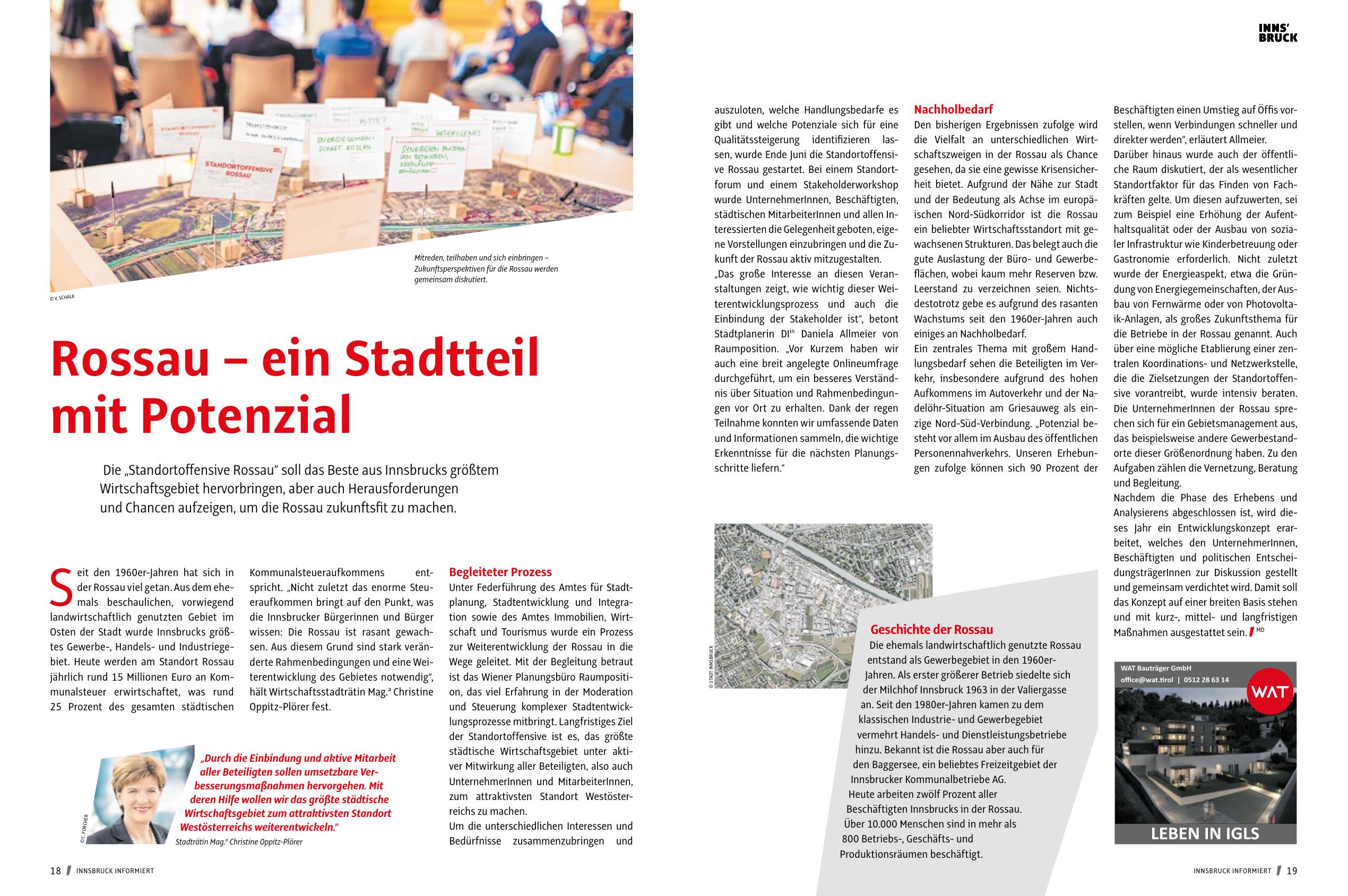 Qualitätssteigerung identifizieren lassen, wurde Ende Juni die Standortoffensive Rossau gestartet. Bei einem Standortforum und einem Stakeholderworkshop
