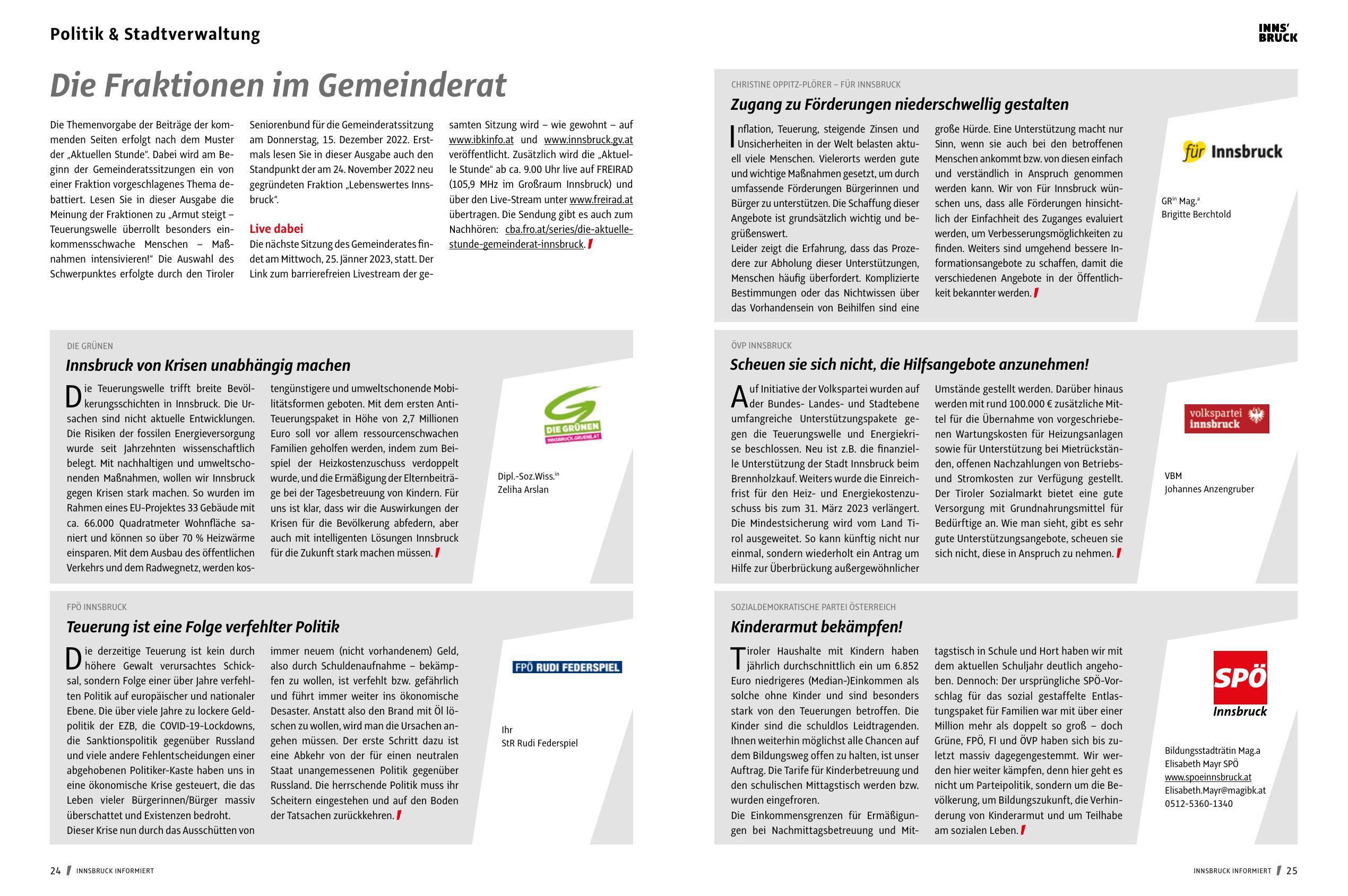 umfangreiche Unterstützungspakete gegen die Teuerungswelle und Energiekrise beschlossen. Neu ist z.B. die finanzielle Unterstützung der Stadt Innsbruck beim