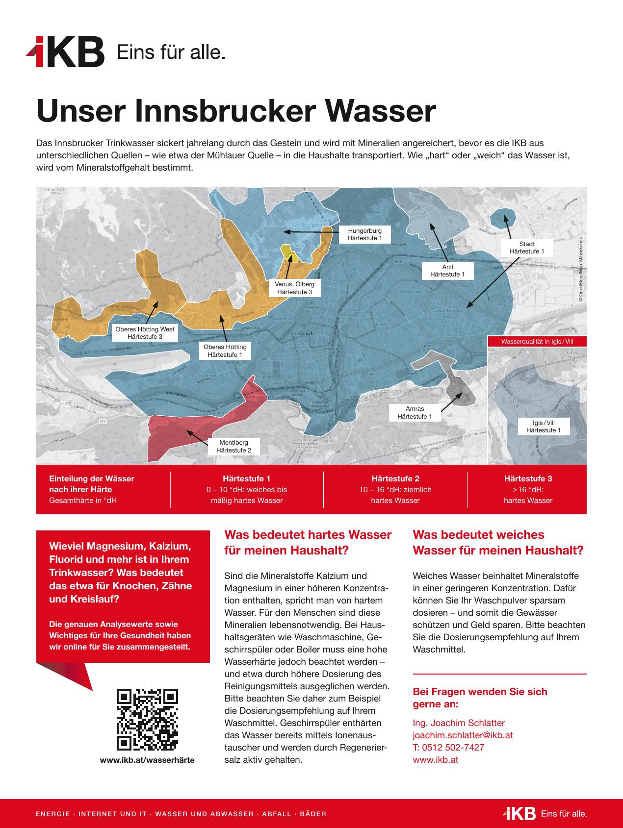 unterschiedlichen Quellen – wie etwa der Mühlauer Quelle – in die Haushalte transportiert. Wie „hart“ oder „weich“ das Wasser ist,