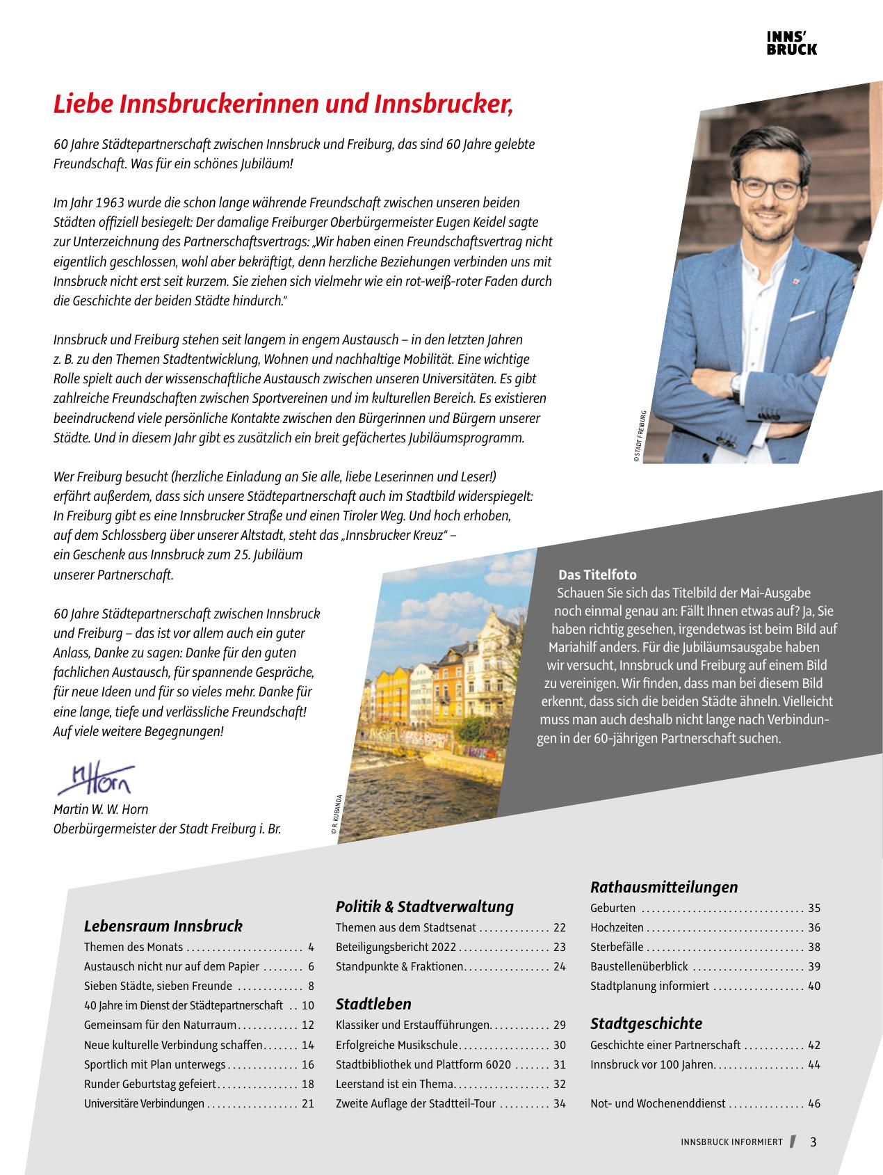 60 Jahre Städtepartnerschaft zwischen Innsbruck und Freiburg, das sind 60 Jahre gelebte