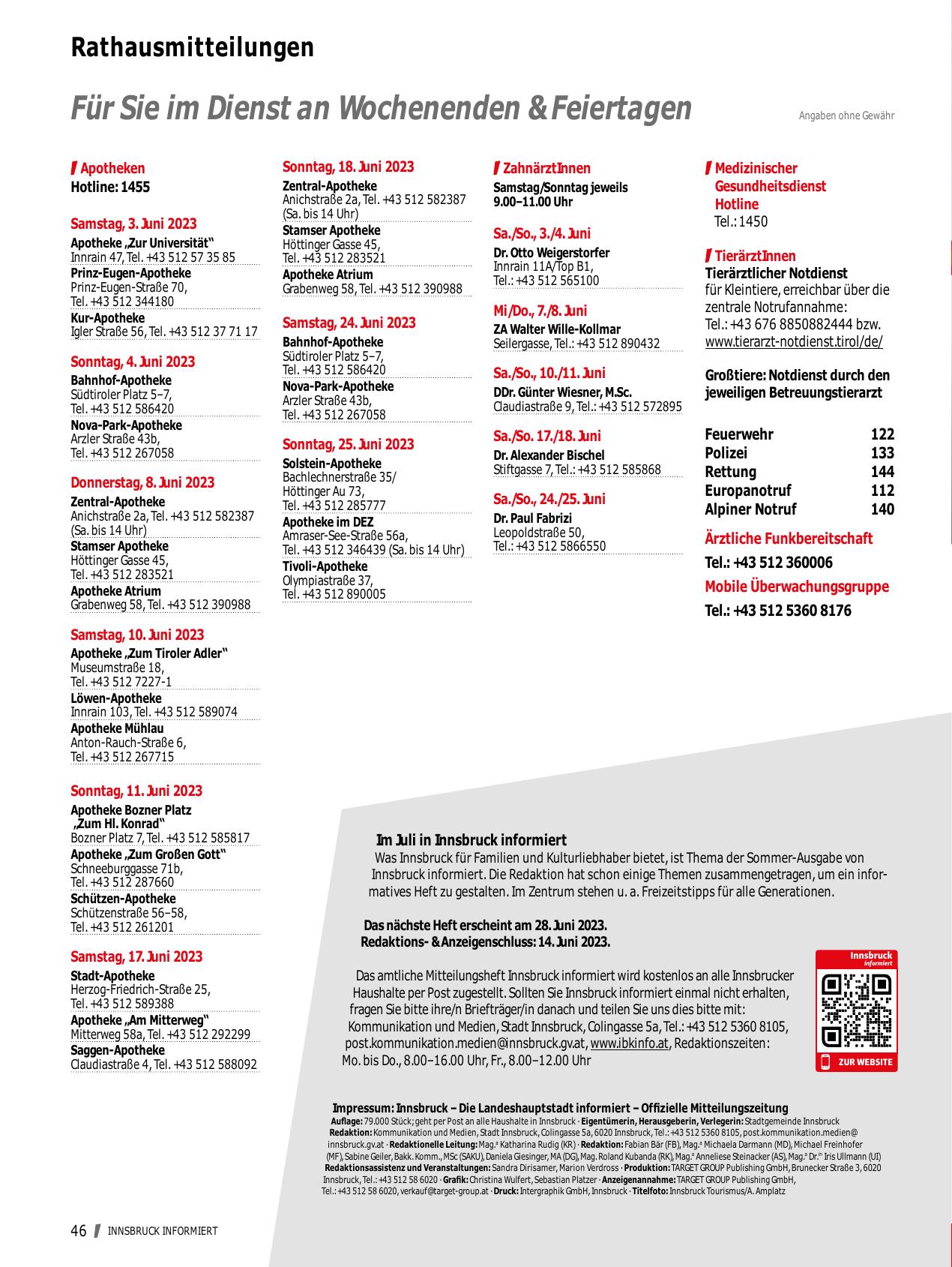 Impressum: Innsbruck – Die Landeshauptstadt informiert – Offizielle Mitteilungszeitung