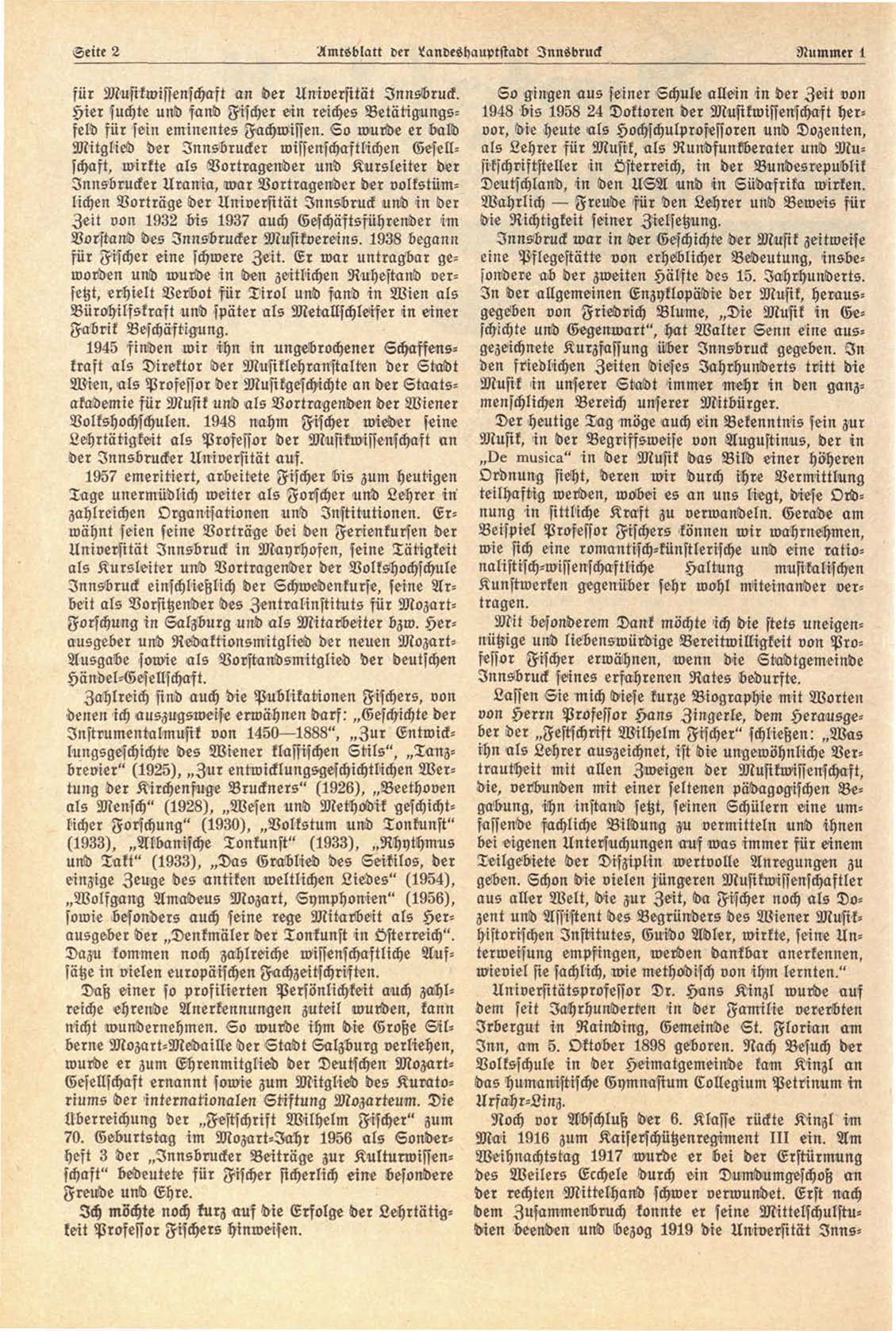 70. Geburtstag im Mozart-Jahr 1956 als Sonderheft 3 der „Innsbrucker Beiträge zur Kulturwissenschaft" bedeutete für Fischer sicherlich eine besondere