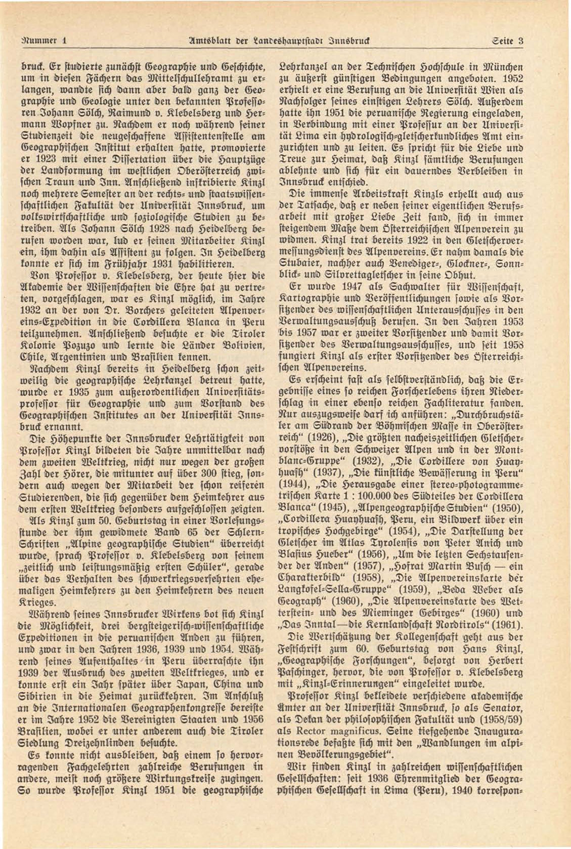 Nachdem Kinzl bereits in Heidelberg schon zeitweilig die geographische Lehrkanzel betreut hatte,