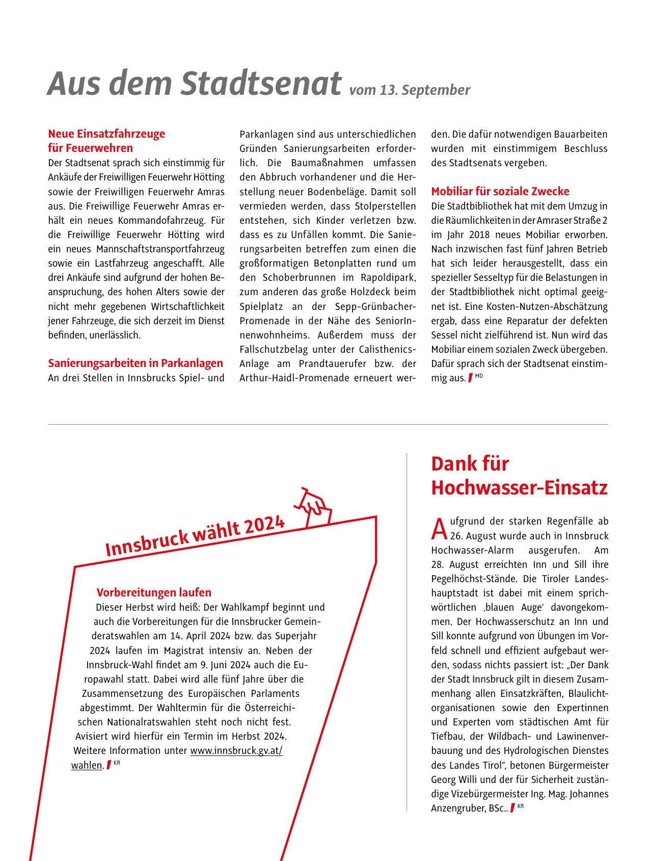 auch die Vorbereitungen für die Innsbrucker Gemeinderatswahlen am 14. April 2024 bzw. das Superjahr
