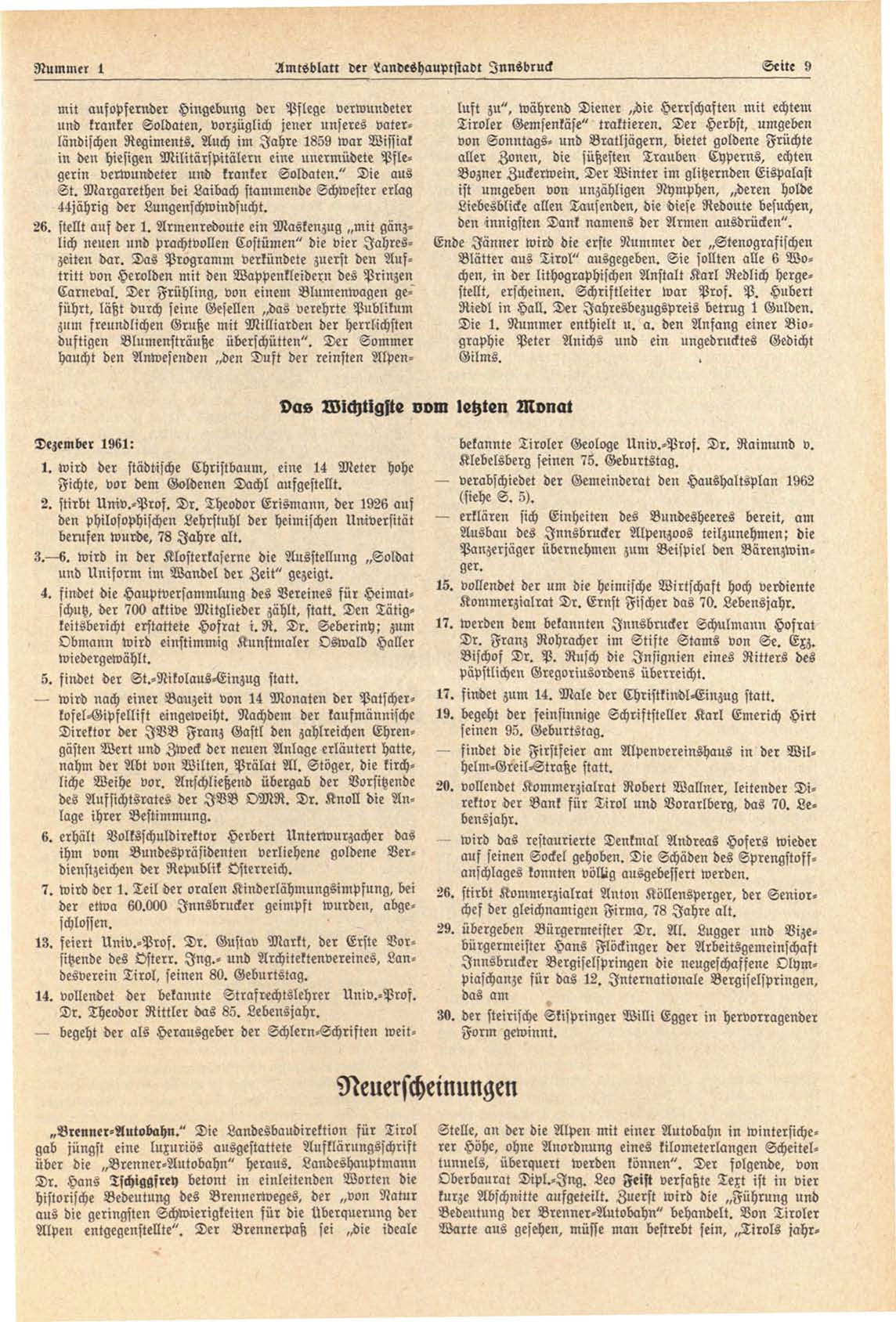 Die 1. Nummer enthielt u. a. den Anfang einer Biographie Peter Anichs und ein ungedrucktes Gedicht