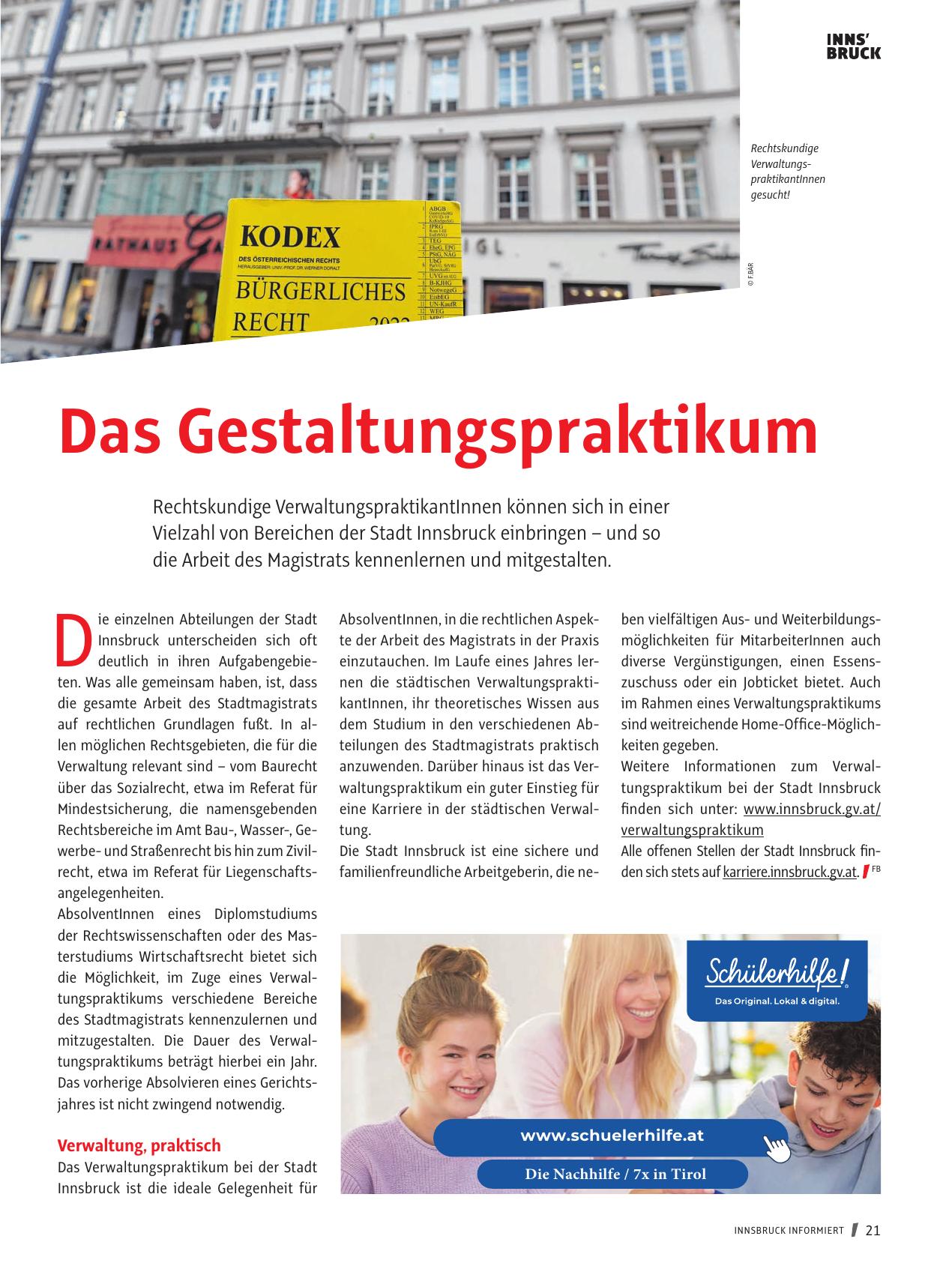 Weitere Informationen zum Verwaltungspraktikum bei der Stadt Innsbruck