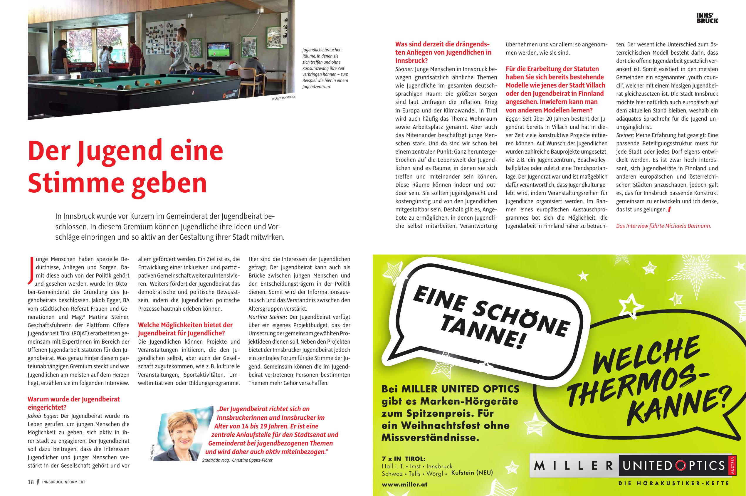 In Innsbruck wurde vor Kurzem im Gemeinderat der Jugendbeirat beschlossen. In diesem Gremium können Jugendliche ihre Ideen und Vorschläge einbringen und so aktiv an der Gestaltung ihrer Stadt mitwirken.
