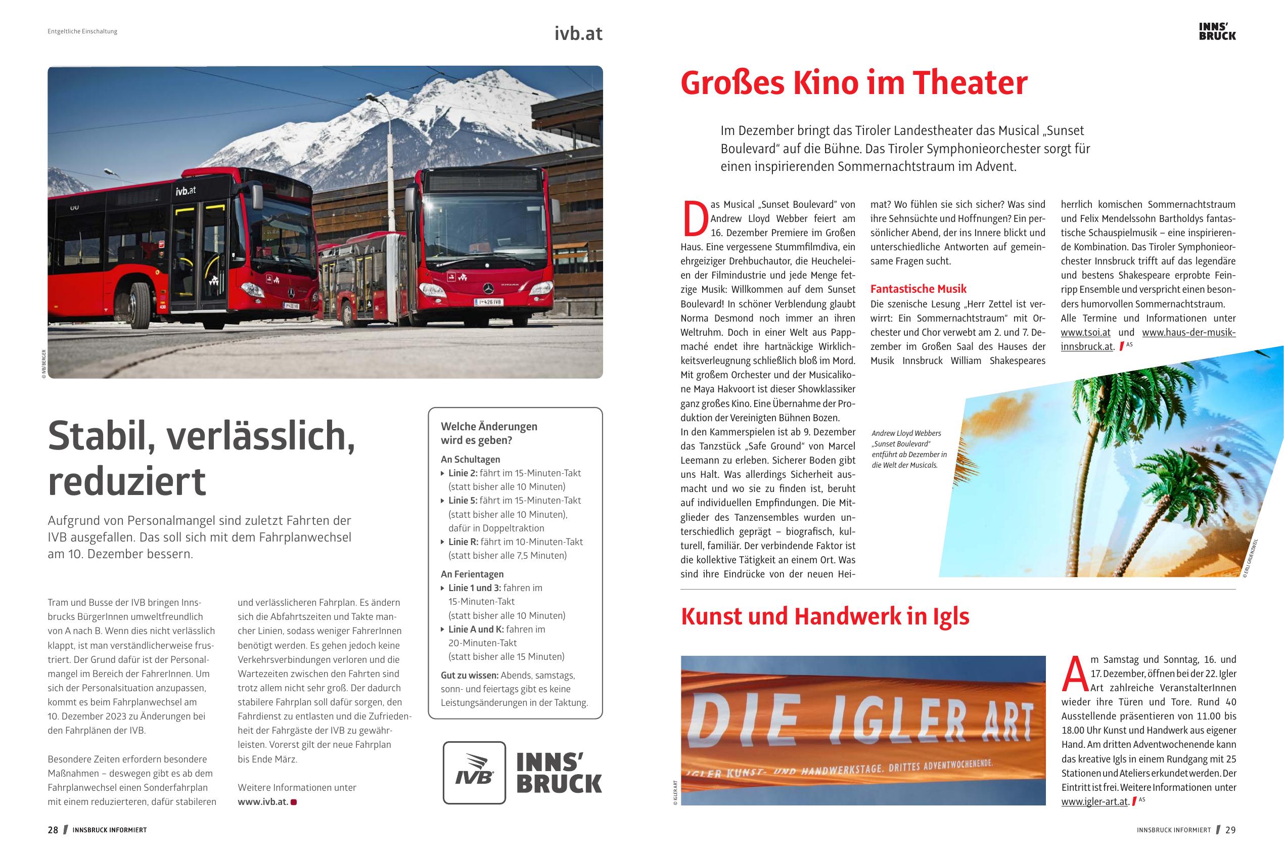 Fahrdienst zu entlasten und die Zufriedenheit der Fahrgäste der IVB zu gewährleisten. Vorerst gilt der neue Fahrplan
