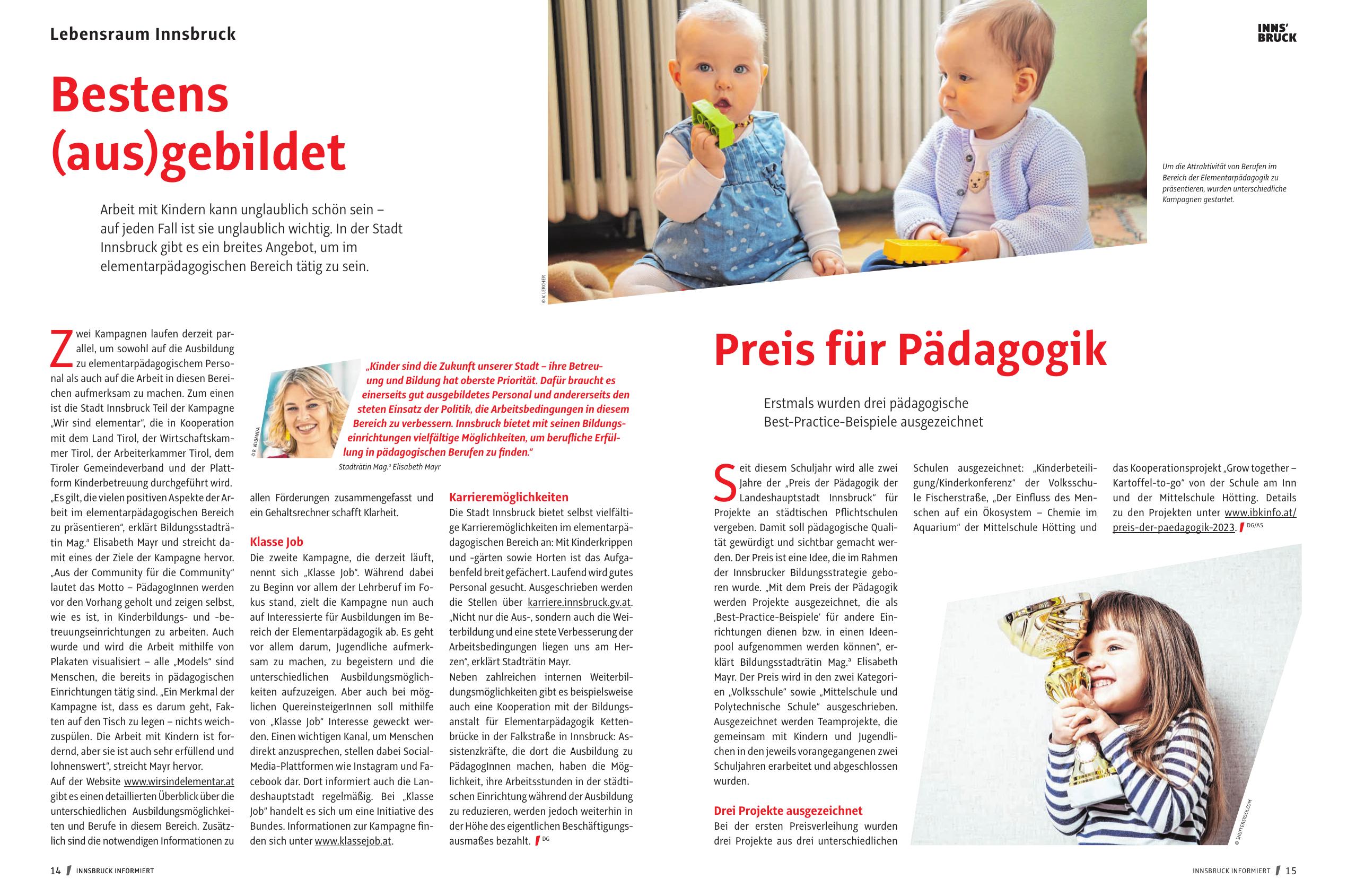 der Innsbrucker Bildungsstrategie geboren wurde. „Mit dem Preis der Pädagogik