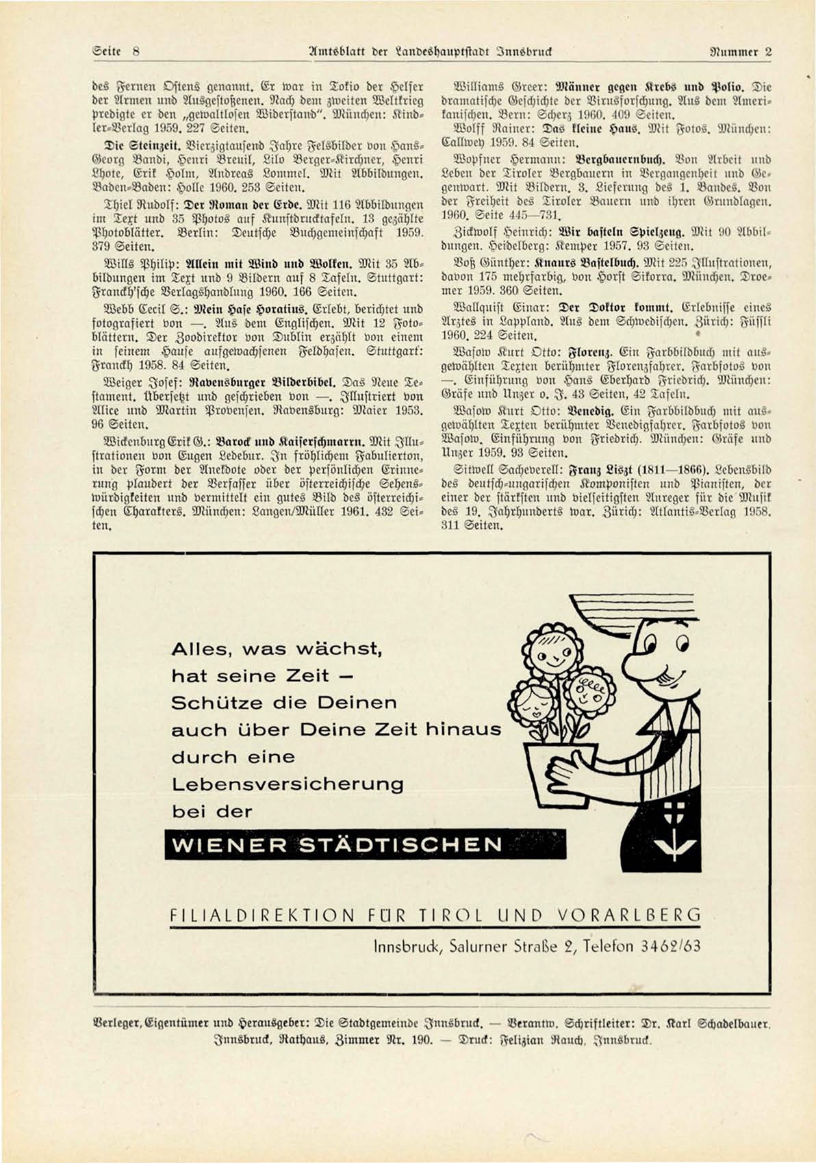 Verleger,Eigentümer und Herausgeber: Die Stadtgemeinde Innsbruck. — Verantw. Schriftleiter: Dr. .ssarl Schadelbancr,