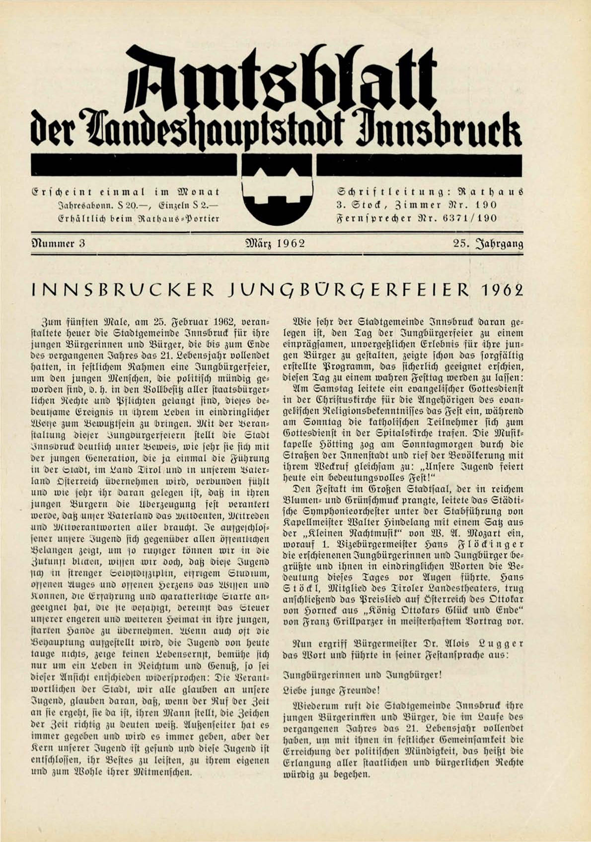 Wie sehr der Stadtgemcindc Innsbruck daran gelegen ist, den Tag der Iungbürgerfeier zu einem