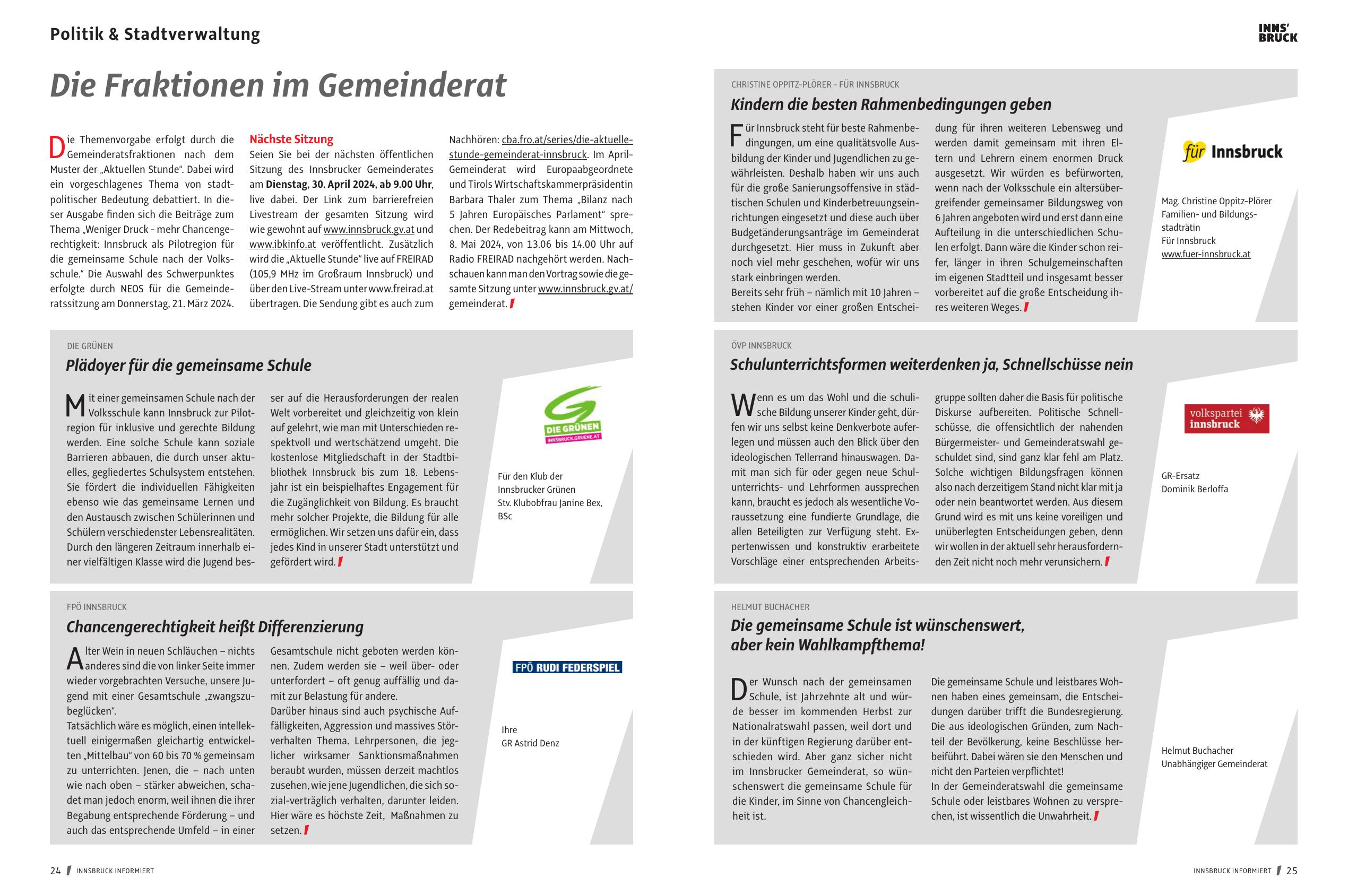 Radio FREIRAD nachgehört werden. Nachschauen kann man den Vortrag sowie die gesamte Sitzung unter www.innsbruck.gv.at/