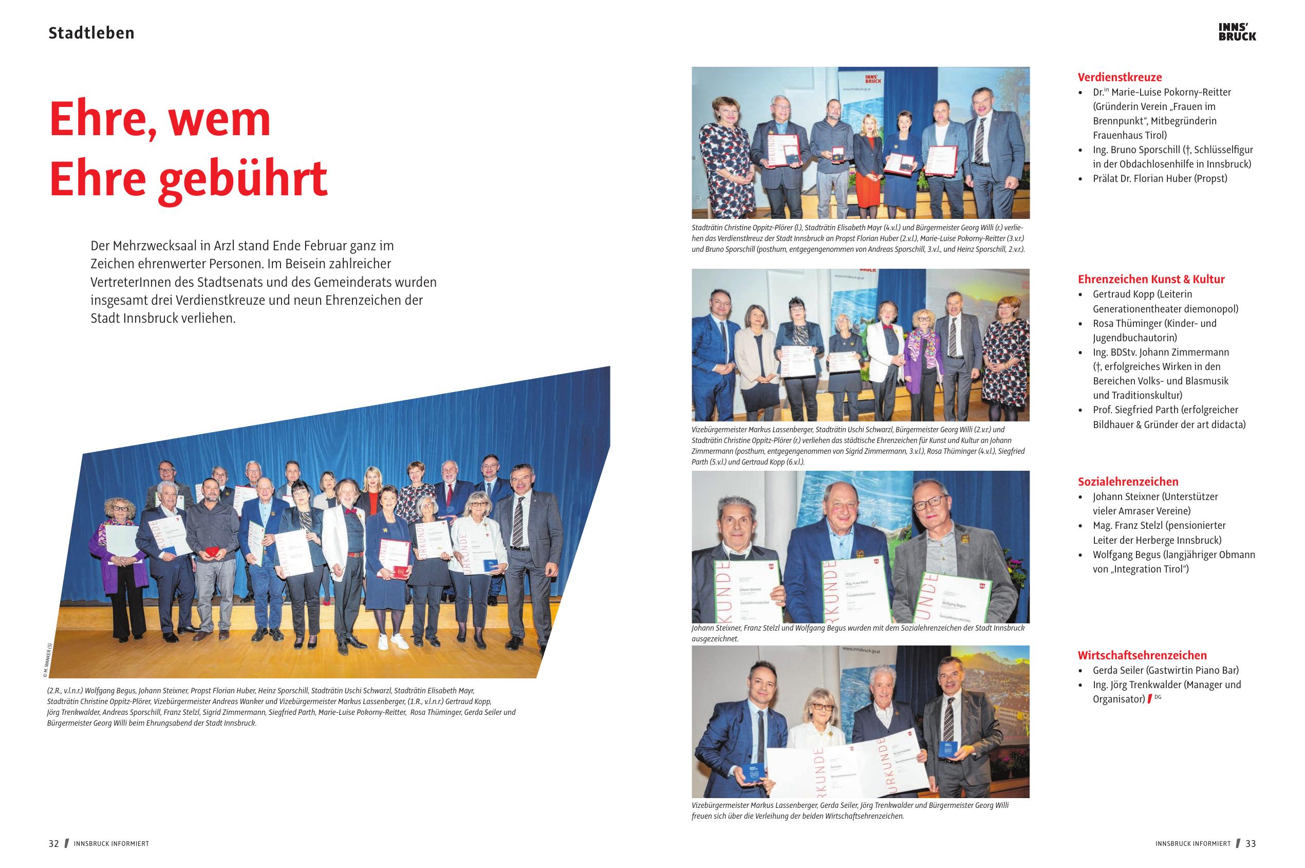 Johann Steixner, Franz Stelzl und Wolfgang Begus wurden mit dem Sozialehrenzeichen der Stadt Innsbruck