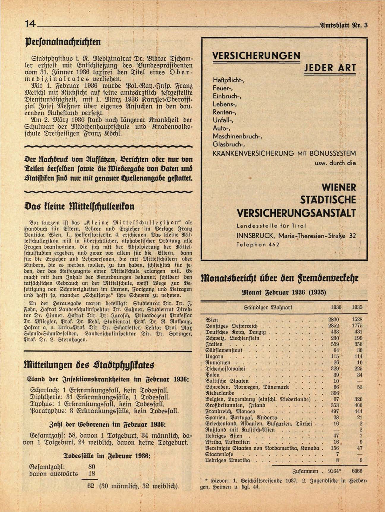 Dienstunfähigkeit, mit 1. Märg 1936 Kanglei-Oberoffizial Josef Meßner über eigenes Ansuchen in den dauernden Ruhestand versetzt.
