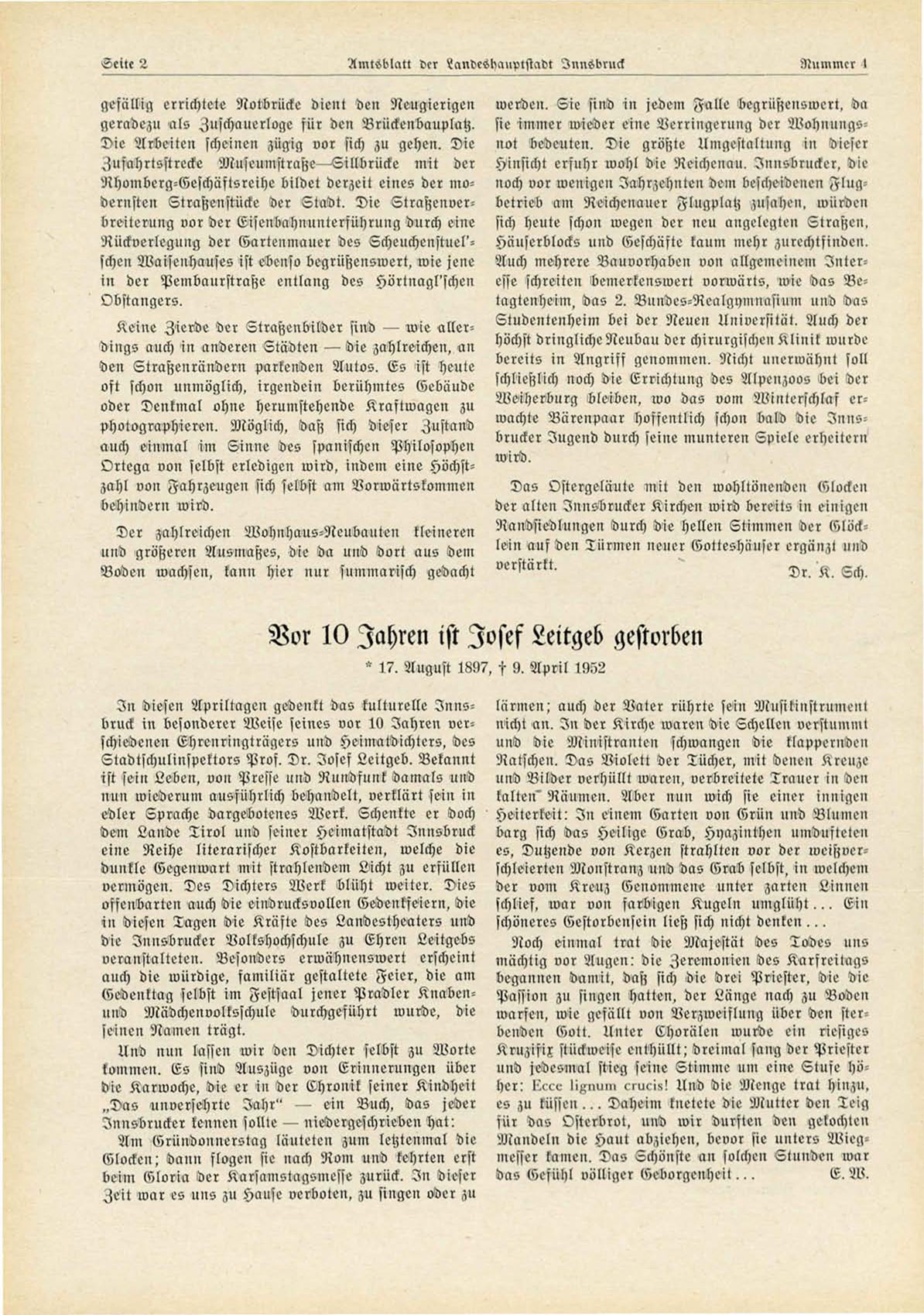 I n diesen Apriltagen gedenkt das kulturelle I n n s bruck i n besonderer Weise seines vor 10 Jahren verschiedenen Ehrenringträgers und Heimatdichters, des