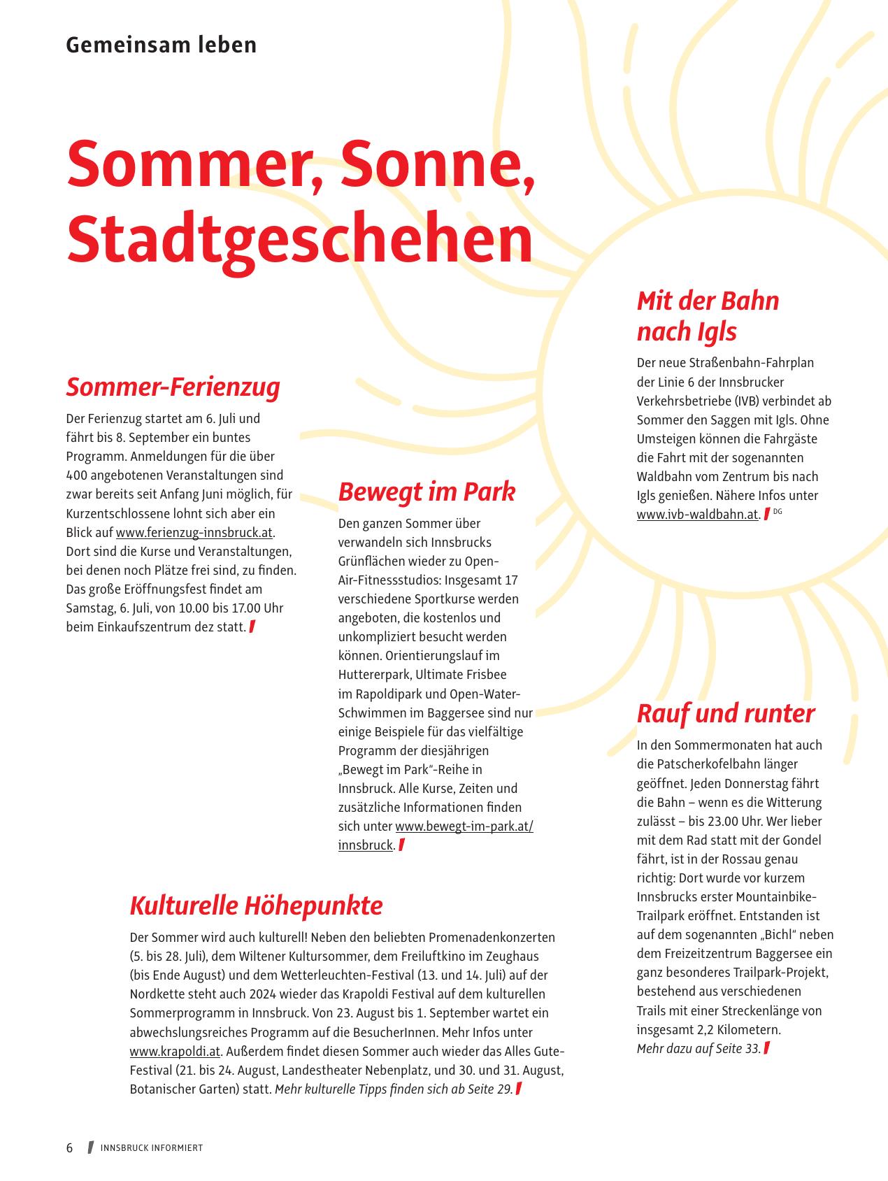Sommerprogramm in Innsbruck. Von 23. August bis 1. September wartet ein